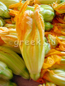 Встречаются разные названия этого блюда. В Домоко они известны под названием "япракья", на Кикладах "циметья". Цветки кабачков должны быть раскрыты, поэтому лучше их собирать утром.