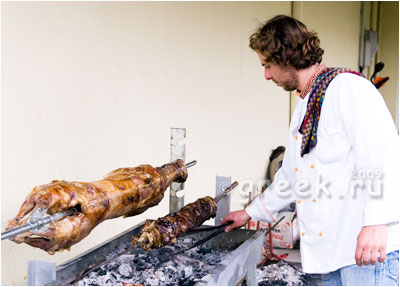 Баранью тушу еще с вечера насаживают на вертел, протыкая ее насквозь от хвоста до головы, посыпают солью, перцем и травами внутри и снаружи и зашивают разрез бечевой. На следующий день разводят несильный огонь и медленно жарят тушу, поворачивая ее над огнем и следя, чтобы мясо не подгорело.