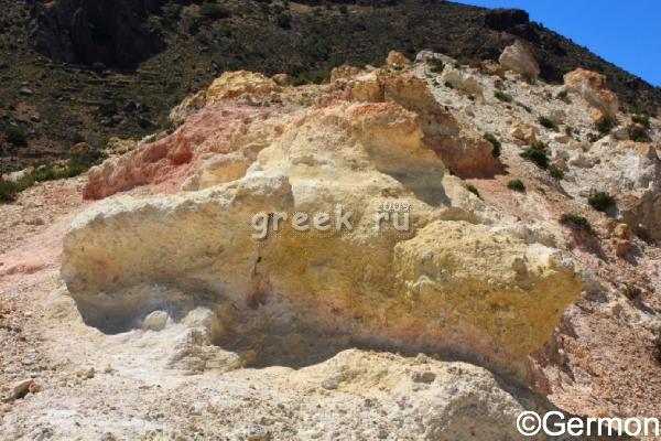Согласно легенде, Посейдон, помогая Зевсу в войне с Титанами, гнался за гигантом Поливотисом до острова Кос, где и отсек своим трезубцем огромный участок суши, который поныне называется Нисиросом, и похоронил под ним Поливотиса. Считается, что самый большой вулкан на острове - это и есть рот Поливотиса.