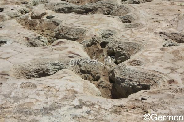 Повсюду стоит запах сероводорода, на удивление, не такой противный, как ожидалось. Из некоторых фумарол струится легкий дымочек (почему-то на фото не видно):