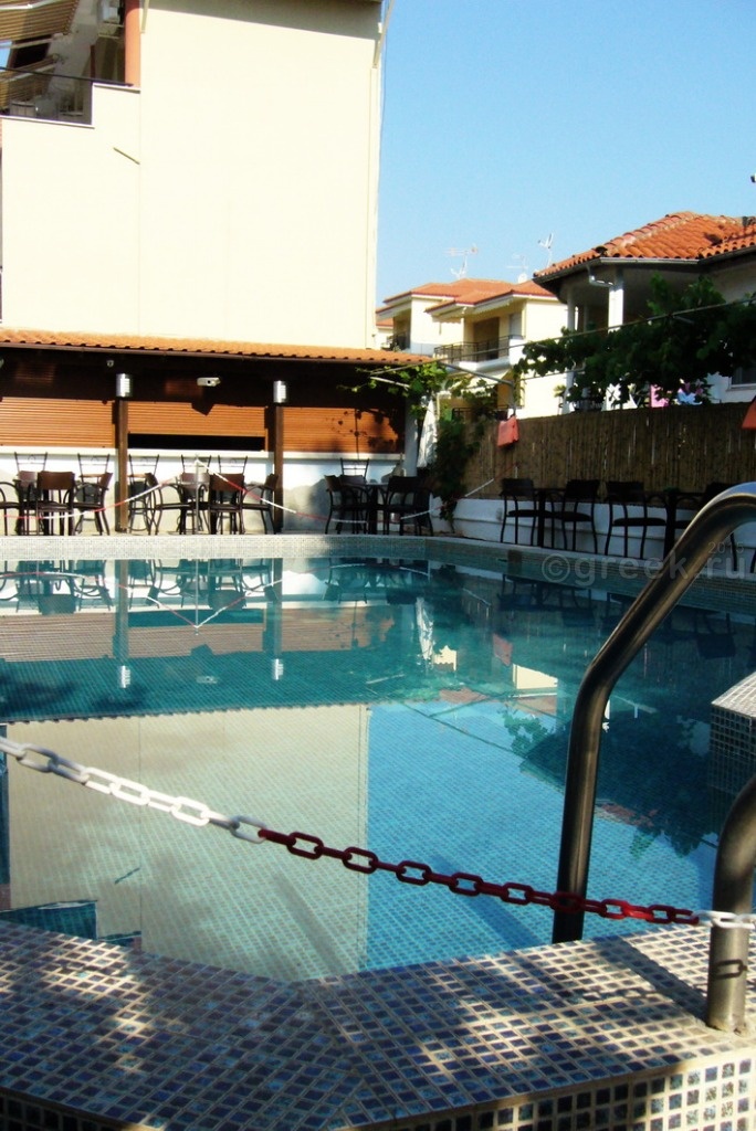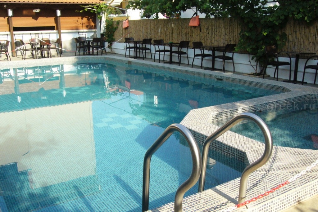Как я читала раньше, хозяйками апартаментов были две сестры – Анна и Кристина. Мы видели только одну бабушку, уже очень пожилую. Она часто сидела на лавочке около reception, иногда разговаривала с жильцами. По-русски она говорила, но не очень хорошо. Командует сейчас в апартаментах Костя - мужичок лет 35 – 40, напомнивший мне молодого Николая Фоменко. Очень энергичный мужчина, успевал и следить за ходом завтраков, чтобы продукты на столах не заканчивались, чтобы все были довольны. Днем поливал розы, заселял новых постояльцев, следил, чтобы горничная хорошо выполняла свои обязанности, за безопасностью в бассейне следил, там всегда днем дети плескались. По вечерам организовывал желающим барбекю, поддерживал разговор во время вечерних посиделок. И при этом успевал сбегать на море. На русском говорит свободно, приветлив. Оставил приятное впечатление. Горничная тоже приветливая, хорошо говорит на русском, но вот свои обязанности выполняла без особого усердия. За пять дней, что мы прожили в этих апартаментах, у нас в номере она убирала один раз, и два раза выносила мусор. Когда закончился рулон туалетной бумаги, она новый не повесила. По утрам на кухне Косте помогала совсем юная девушка, на мой взгляд, лет 15 – 17. Она убирала и мыла посуду, и, пожалуй, лишь у нее единственной мы видели недовольное выражение лица. Девочку, конечно, можно понять – хочется с друзьями погулять, в море поплавать, а тут каждый день посуду мыть приходится.