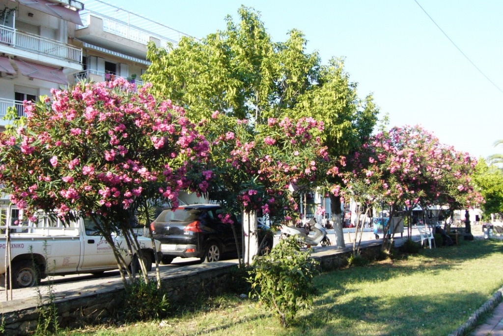 Автовокзал – маленькое одноэтажное здание. К кассам сразу выстраивается очередь за билетами, а мы пока занимаем свободные места в зале ожидания, так как до нашего автобуса (Салоники – Нео Мармарас) в 13-30 еще целый час. Уточняю в справочном окошке, где именно продают билеты на нужный нам автобус. Оказывается, билет можно купить в любой кассе. Очередь, вначале показавшаяся мне очень большой, двигается быстро. Билет до Метаморфоси стоит 10,9 евро. Через 10 минут после того, как наш автобус подъехал к автовокзалу, в кассах не было ни одного человека. Многие пассажиры коротали время до своего рейса в кафе, которое находится в соседнем с залом ожидания помещении. Я развлекалась тем, что слушала названия рейсов на греческом языке и пыталась поймать знакомые названия. Объявляли автобусы на Кассандру, на Афон. Вот и подошло время нашего рейса. Выходим на площадку, где стоят автобусы, одновременно с объявлением посадки на одном из автобусов загорается табло с указанием конечного пункта. Неорганизованной толпой подходим к автобусу, где нас быстро организует помощник водителя, который загружает багаж. Он выкрикивает названия населенных пунктов, начиная с самого дальнего (то есть с Нео Мармараса), забирает у пассажиров багаж и размещает его в багажном отделении внизу автобуса. Сдаем багаж, находим в автобусе свои места и устраиваемся поудобнее. Автобус комфортабельный, мягкие сидения, работает кондиционер. Дорога долгая, это при том, что Метаморфоси расположен у самого начала «пальчика» под названием Ситония. Паренек, который укладывал наш багаж, все время ходит по салону, объявляет следующий населенный пункт. Он как-то умудрился запомнить нас, пассажиров, так как подходил с напоминанием об остановке именно к тем пассажирам, которые должны были выходить. Проезжаем сначала населенные пункты (я не знаю, можно ли назвать их городками) на основании «трезубца», затем въезжаем на узкую полоску Ситонии. Справа вдали виднеется Кассандра. Проехали Геракини, Псакудью, вот и наш Метаморфоси. Кстати, мне очень трудно было привыкать к ударениям в названиях греческих поселков. Вот и наш МетамОрфоси произносят в Греции с ударением на первое «о». Как говорил один известный киноперсонаж: «какой занятный язык»!
