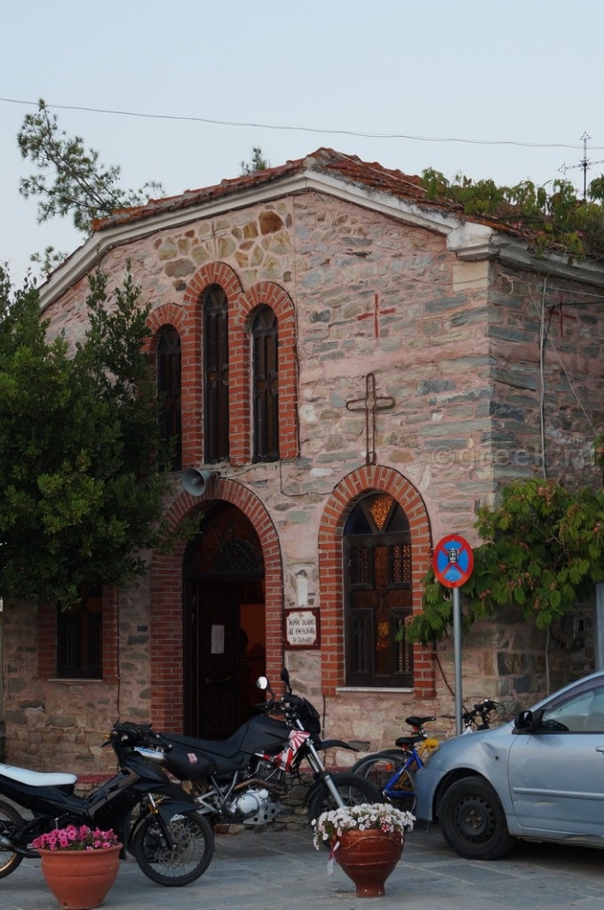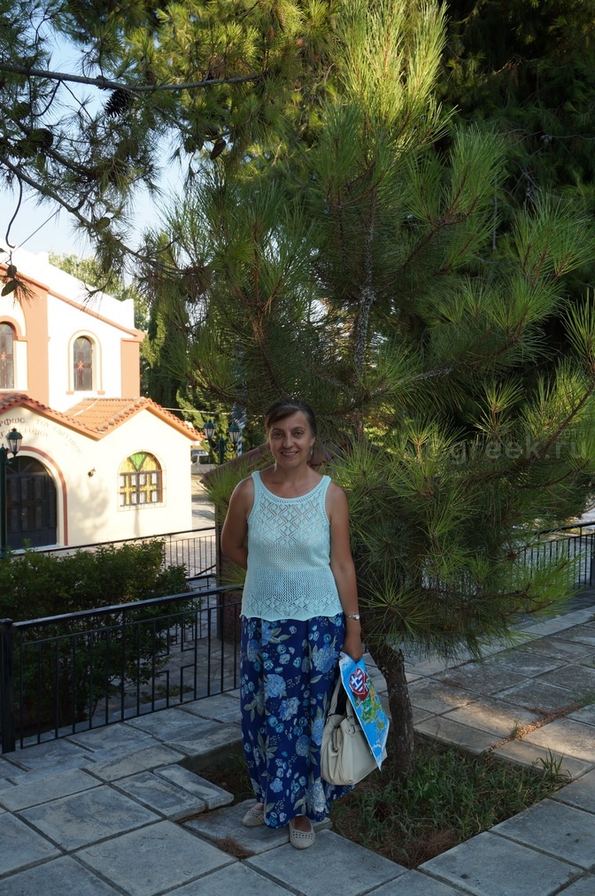 В центре поселка, как всегда в Греции, церковь, а напротив нее – небольшой овощной магазин, в который мы с удовольствием ходили. Цены на фрукты-овощи низкие, выбор продуктов большой (у меня от обилия сортов винограда глаза разбегались). И замечательный продавец. В Метаморфоси практически все говорят на русском языке, а вот этот мужчина не знал русского, мы общались на английском. Но он каждый раз, когда мы заходили в магазин за покупками, спрашивал у нас новые слова на русском и пытался их запомнить. Очень приветливый и обаятельный человек.