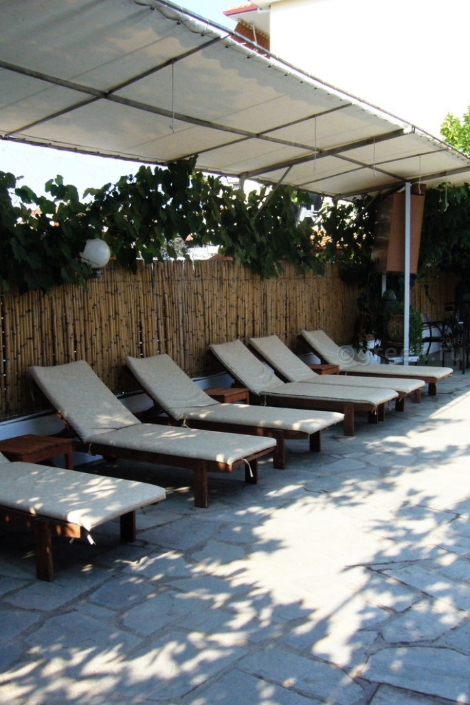 В самом поселке расположены Simeon, Golden Beach, Porto Matina. На гугль-карте есть еще Metamorfosis Bungalos Hotel, но что-то мне он на глаза не попался. Названные отели на меня впечатления не произвели (внутри не была, говорить не буду), обычные бетонные коробки (особенно Golden Beach), практически без территории. Большие отели, такие как Blue Dolphin, Porfi Beach Hotel и пафосная Danai Beach Resort & Villas, находятся на значительном удалении от поселка (около часа неспешного хода). Территория у Данаи просто потрясает воображение! Но, как я прочитала в каком-то отзыве: «стОит как крыло от самолета».