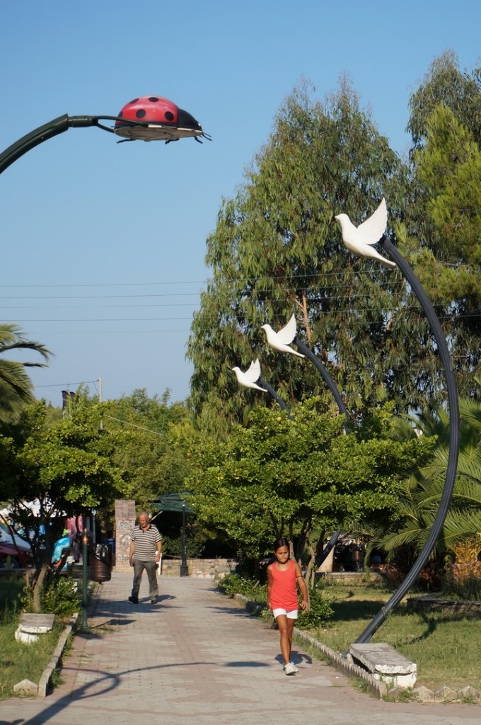 Очень нам фонари понравились в виде голубей и божьих коровок!
