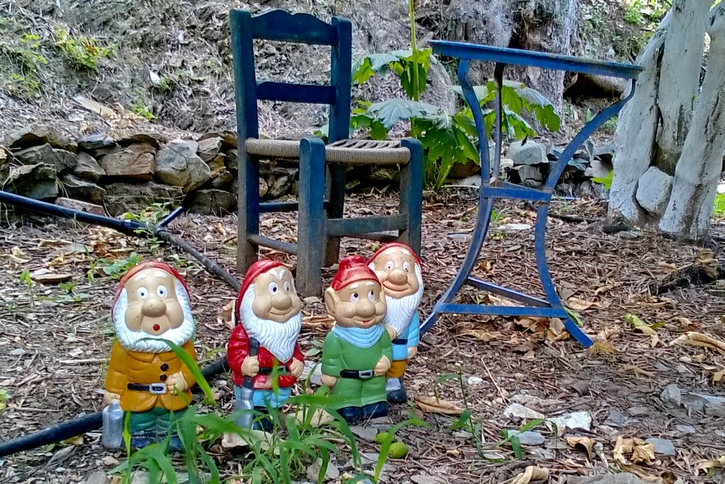Есть места для отдыха, так как прогулка по парку занимает не один час, а тропинка то поднимается в гору, то спускается вниз.