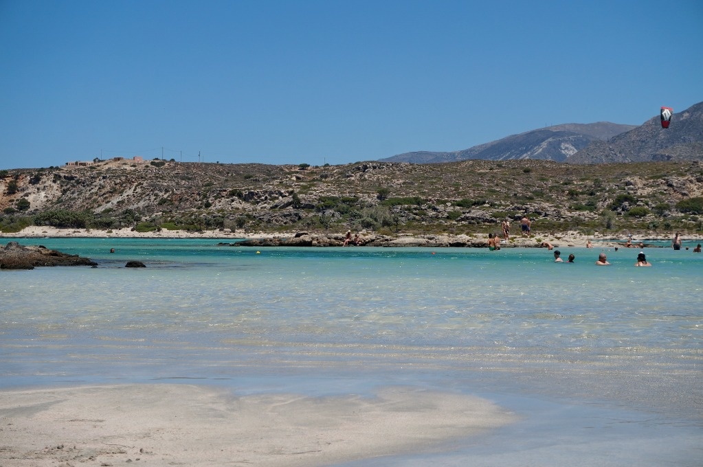 Экскурсовод объяснила, что в результате движения геологических плит западная часть Крита поднимается, поэтому до острова Элафониси (олений остров в переводе с греческого) можно дойти по песчаному перешейку. Лежаки расположены плотными группами, но занимают не более одной десятой пляжа. Отойдите чуть в сторону – и никто вам не будет мешать.