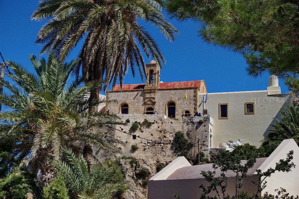 Пишут, что виды от монастыря захватывающие. Я думала, что монастырь высоко в горах находится, а он лишь на небольшой возвышенности. Чего-то сверхъестественного я не увидела. Виды от Ботанического парка или от перевала, когда мы к ущелью Агия Ирини ехали, куда круче.
