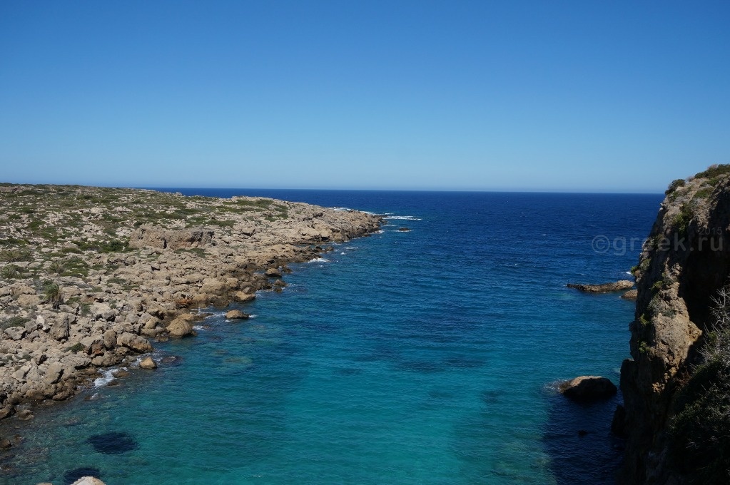 Фаласарна встречает бирюзовым небом и совсем небольшими волнами.
