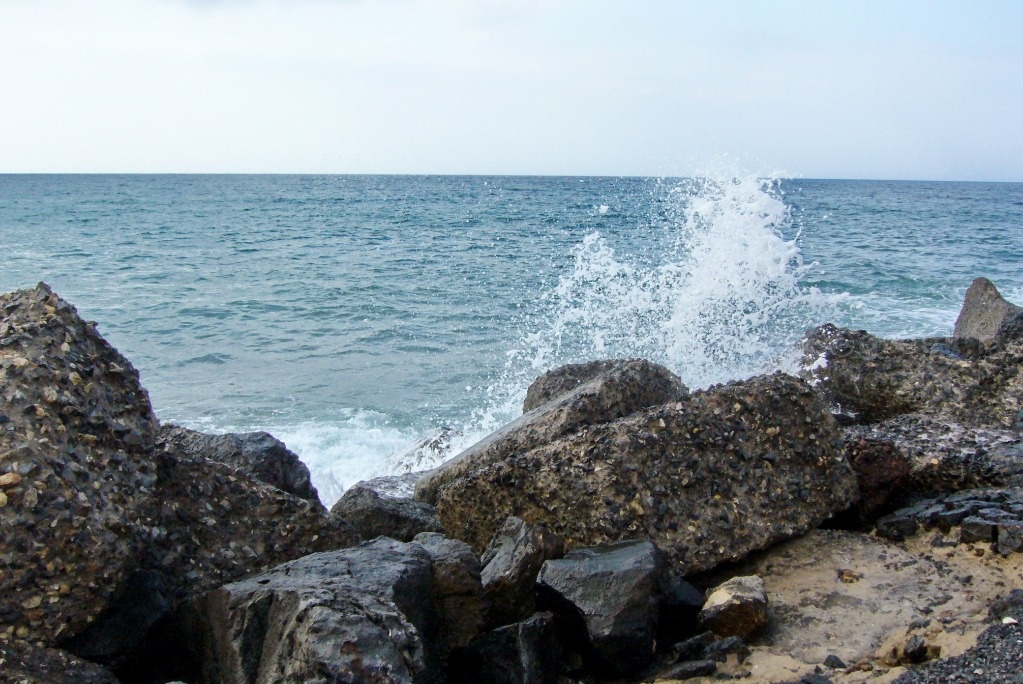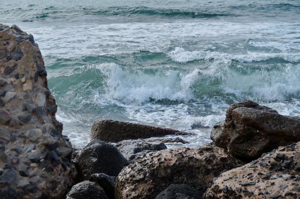 Море неспокойное, волны так и стремятся выплеснуть свою энергию на набережную.