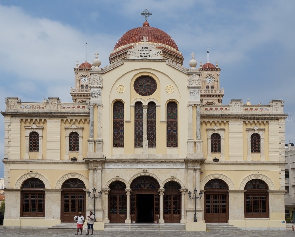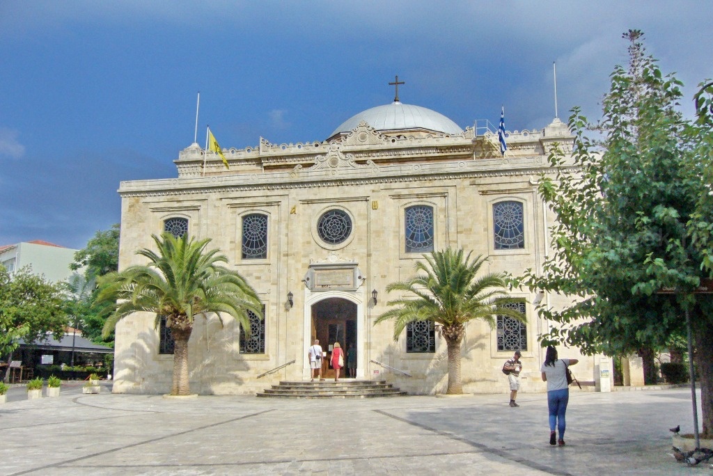 Еще несколько шагов – и мы видим собор святого Тита, ученика апостола Павла, который проповедовал христианство на Крите. Древняя церковь Святого Тита была в Гортине, а этот храм был возведен в 10 веке н.э. Сейчас здесь находится кафедральный собор Ираклионской архиепископии.