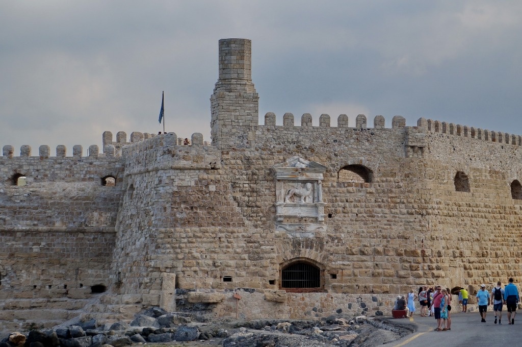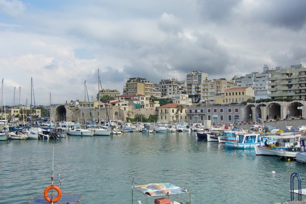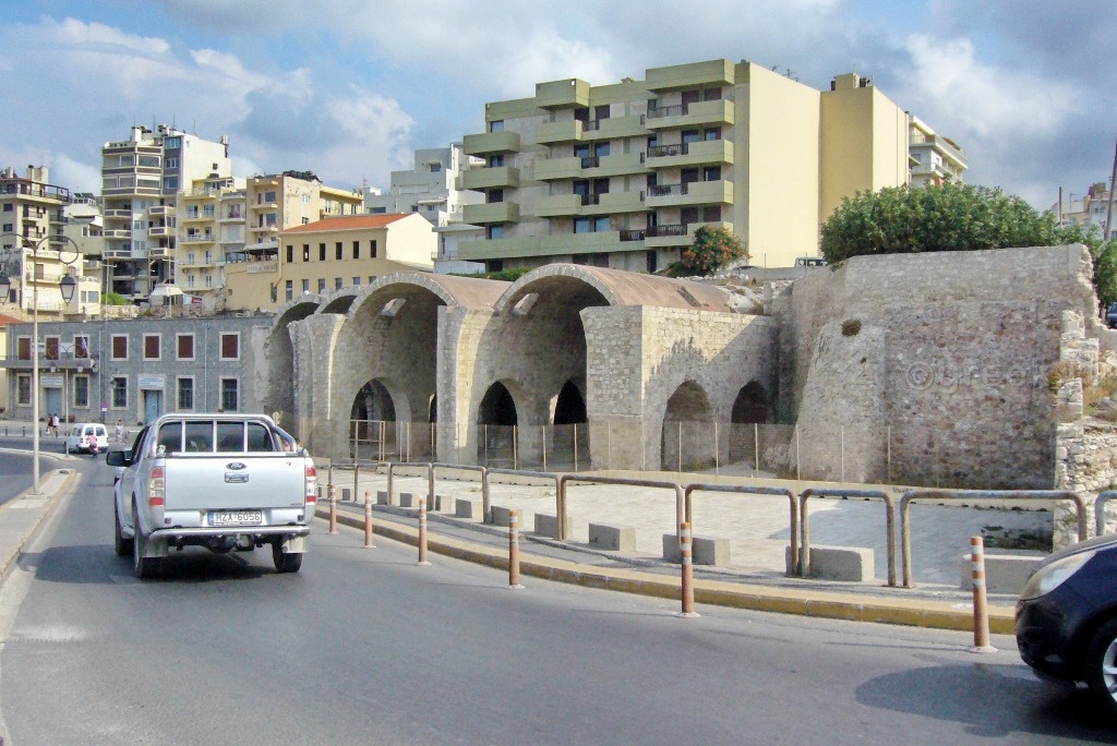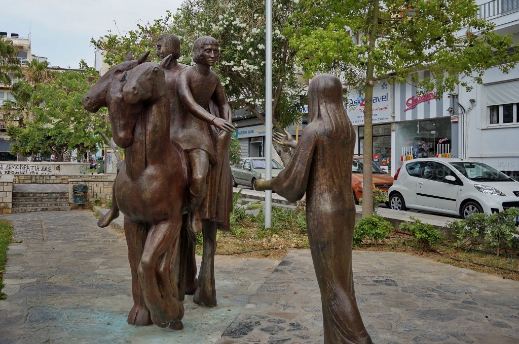 Выходим на улицу 25 августа, названную так в память о трагических событиях 1898 года, когда турки из-за подозрения в подготовке антитурецкого восстания уничтожили 500 православных критян и 14 британских моряков. Только после этого европейские державы поставили ультиматум, требуя полного вывода турецких войск с территории Крита. Сейчас улица 25 августа – центральная улица города, на которой расположены дорогие магазины, рестораны, банки. По ней мы и вышли к набережной. В центре небольшой круговой дорожной развязки – статуя «дельфины».
