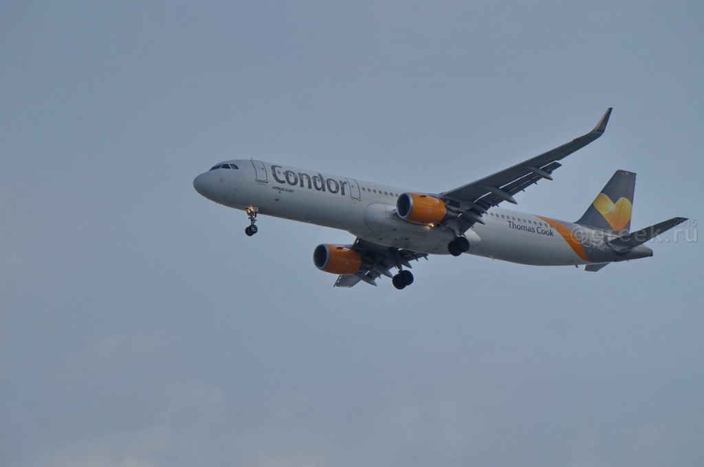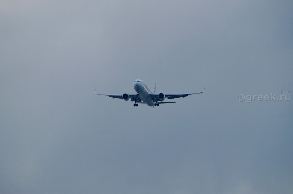 А во-вторых, сегодня ветер поспособствовал тому, что самолеты заходят на посадку не с востока, а прямо над набережной и крепостью. Сын не выпускает фотоаппарат из рук.