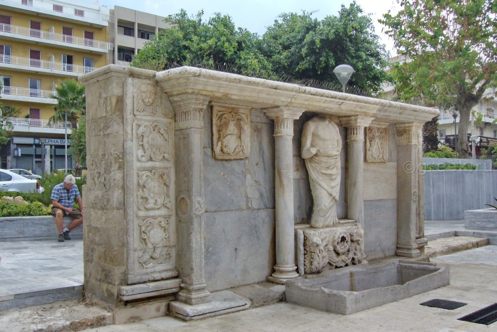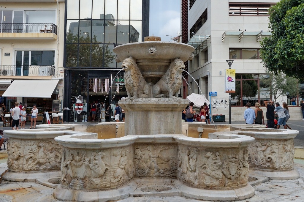 Это венецианский фонтан, самый старый из сохранившихся фонтанов Ираклиона, назван в честь построившего его венецианца Джанматтео Бембо. Джанматтео первым сумел подвести в Ираклион питьевую воду. Вода приходила из окрестностей через специальный акведук. Фонтан сделан из кусочков мрамора, он украшен венецианскими гербами и безголовой статуей, стоящей на постаменте, которая была привезена из города Иерапетра. При нас фонтан не работал.