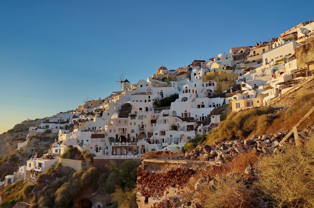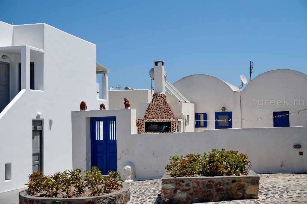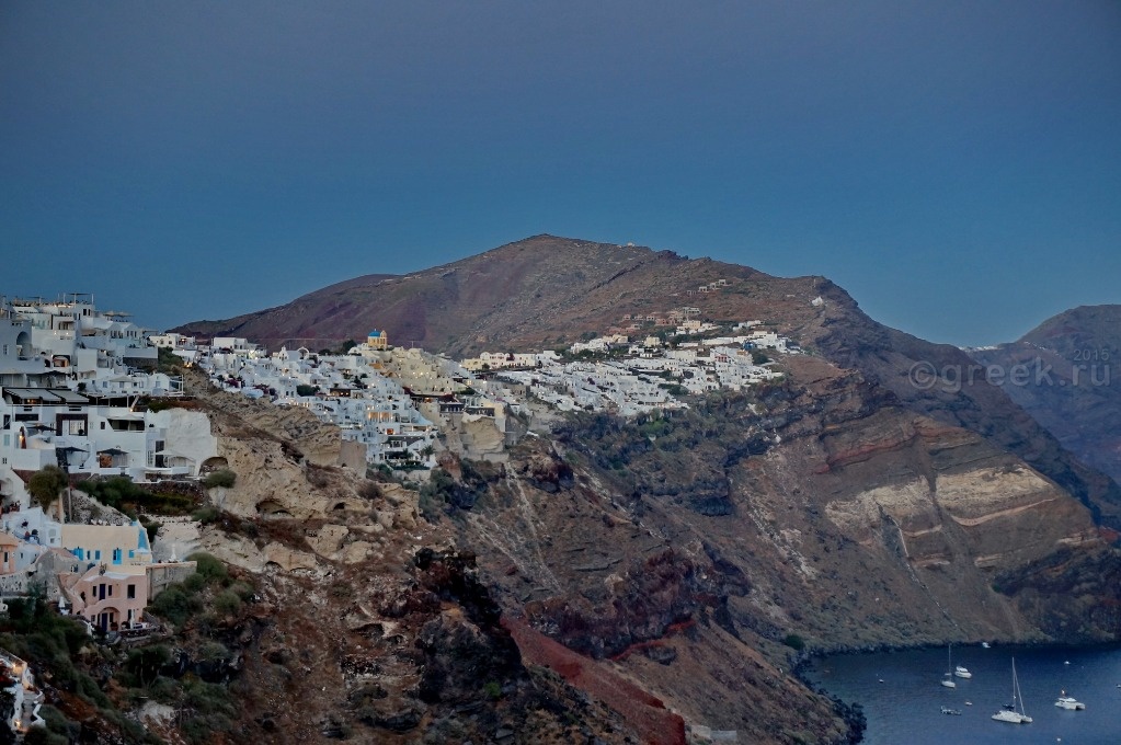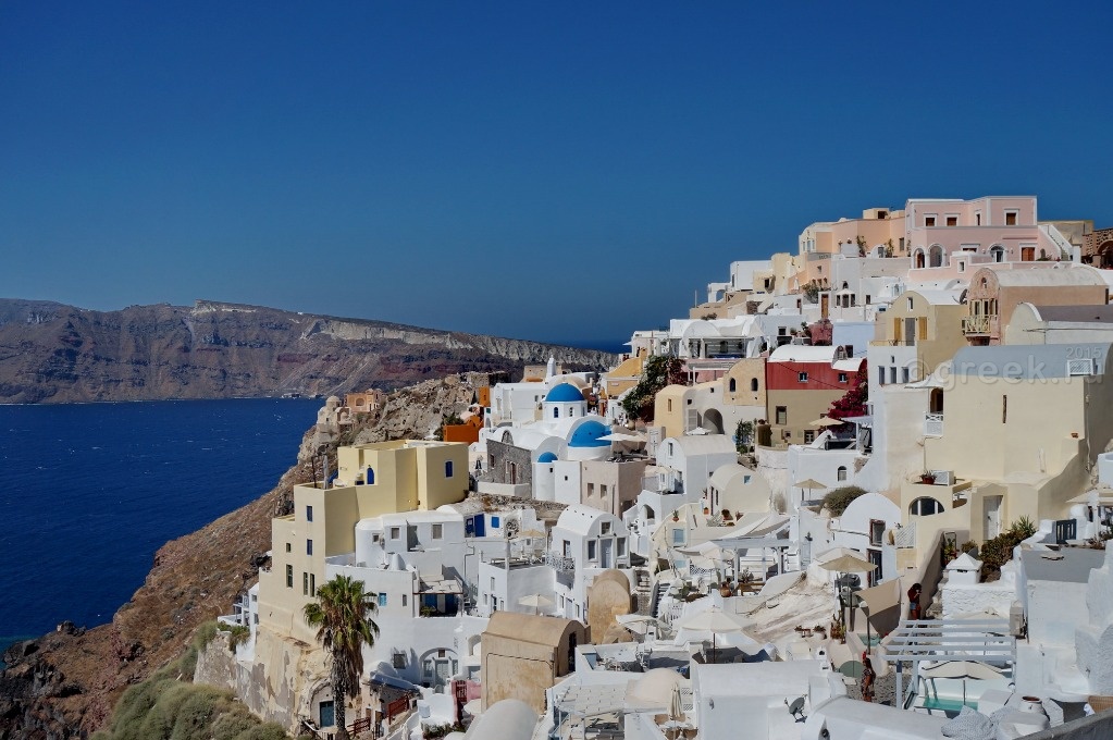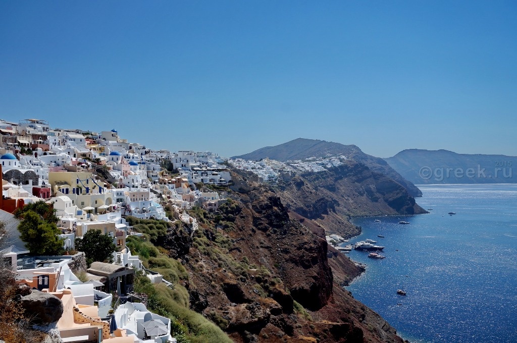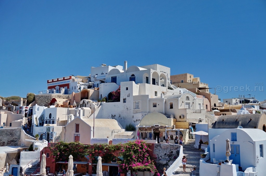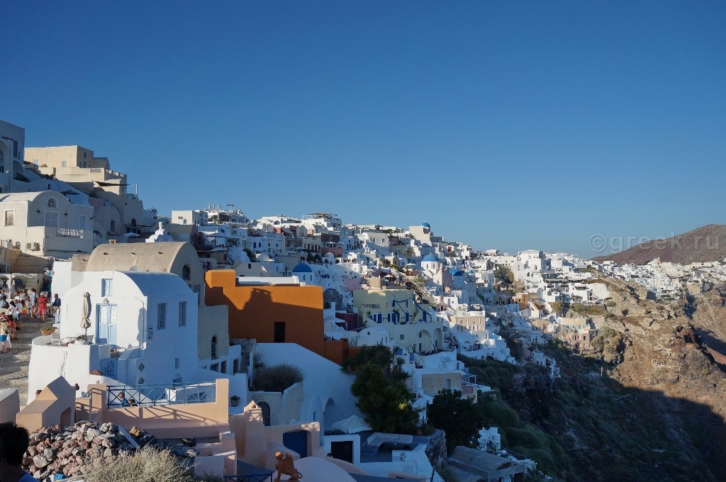 Белые, розовые, желтые домики теснятся на склоне также как и в Фире.