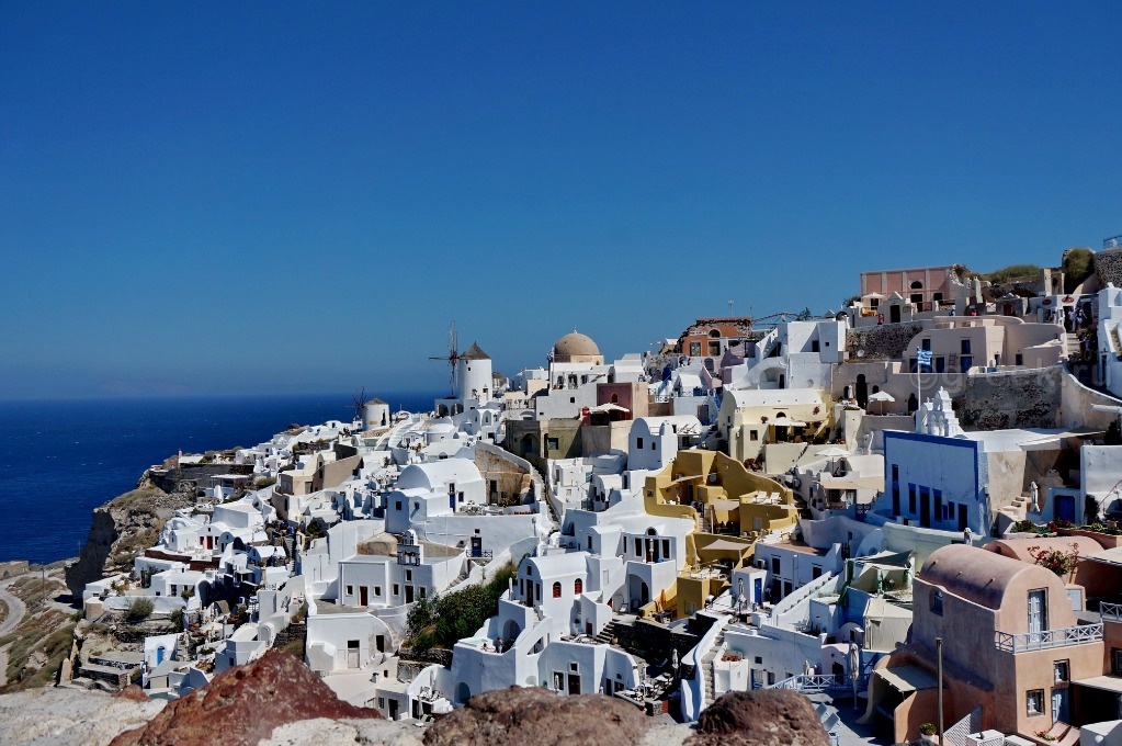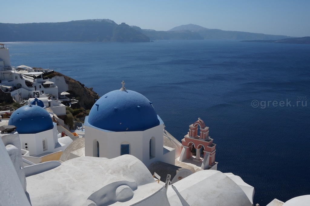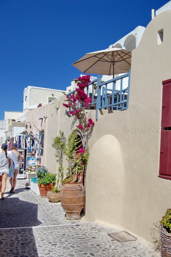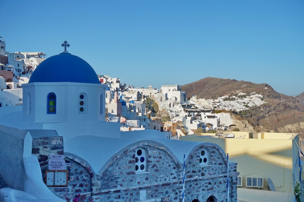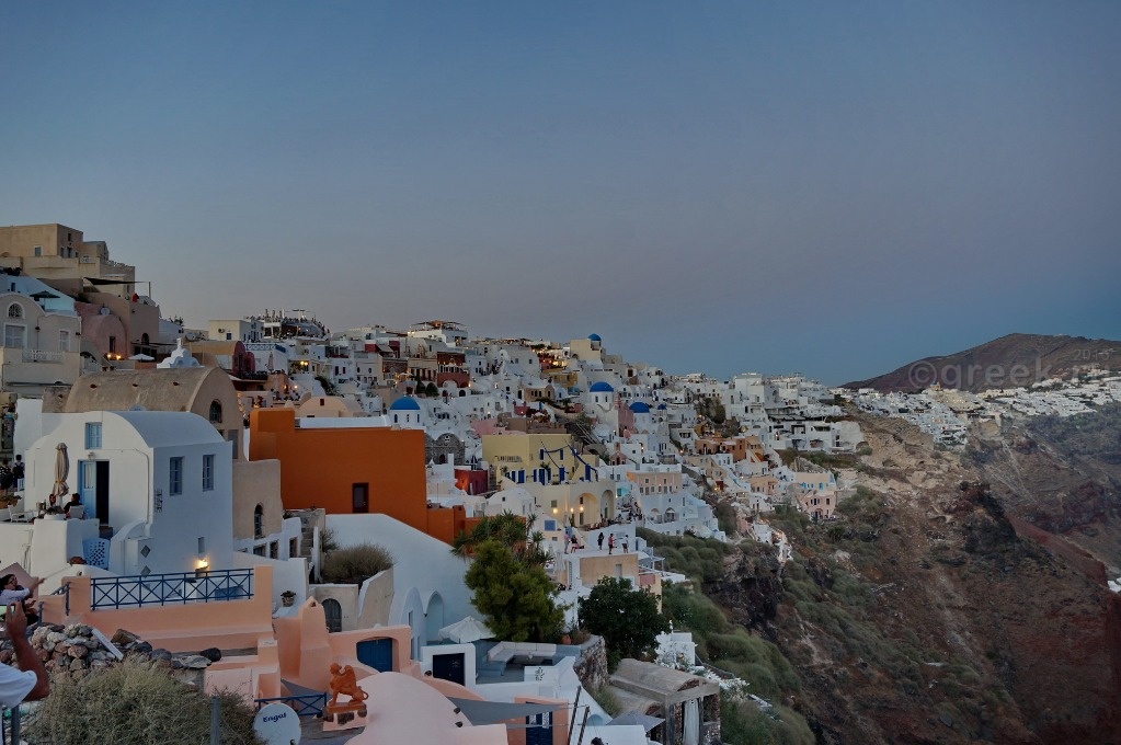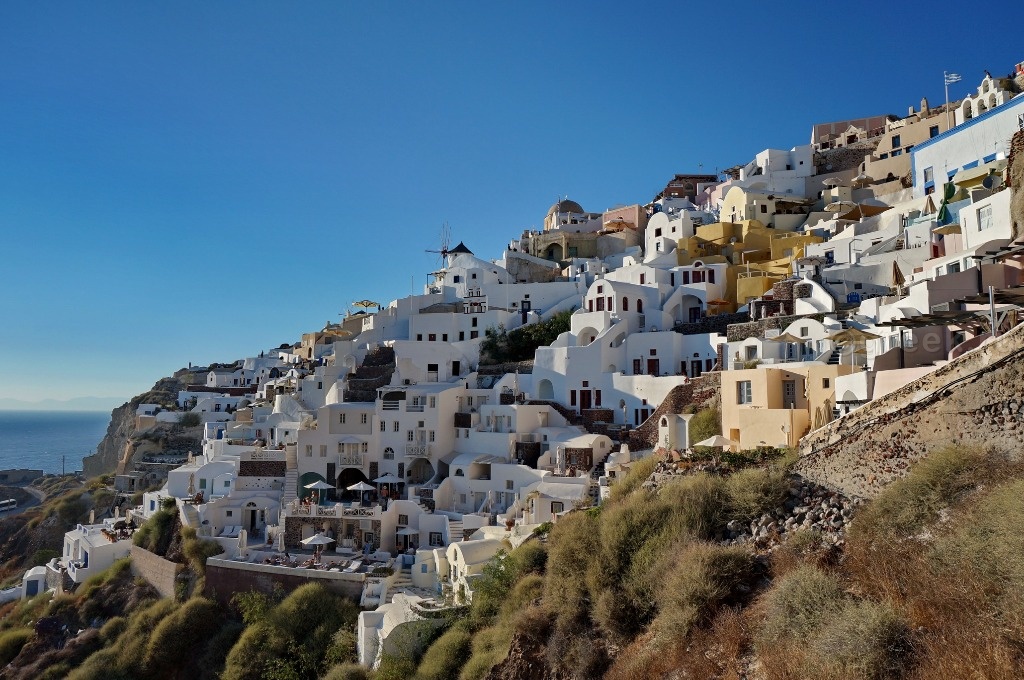 Белые, розовые, желтые домики теснятся на склоне также как и в Фире.