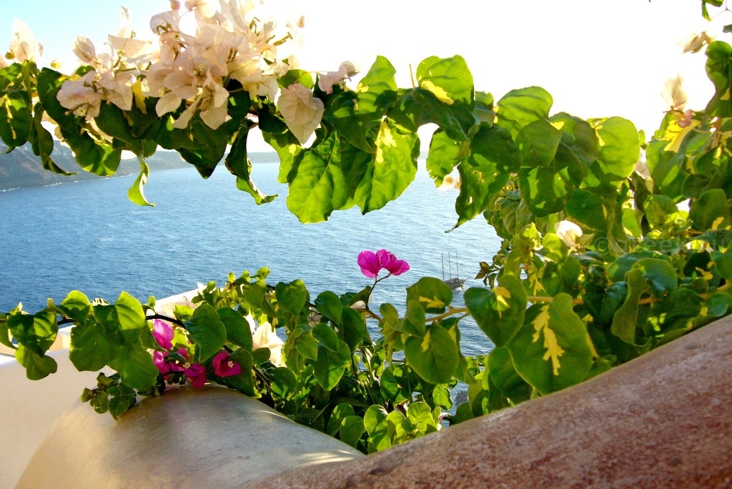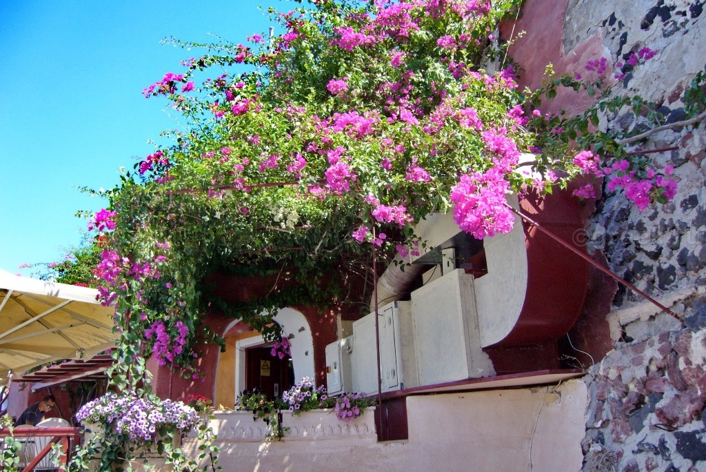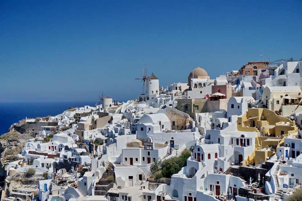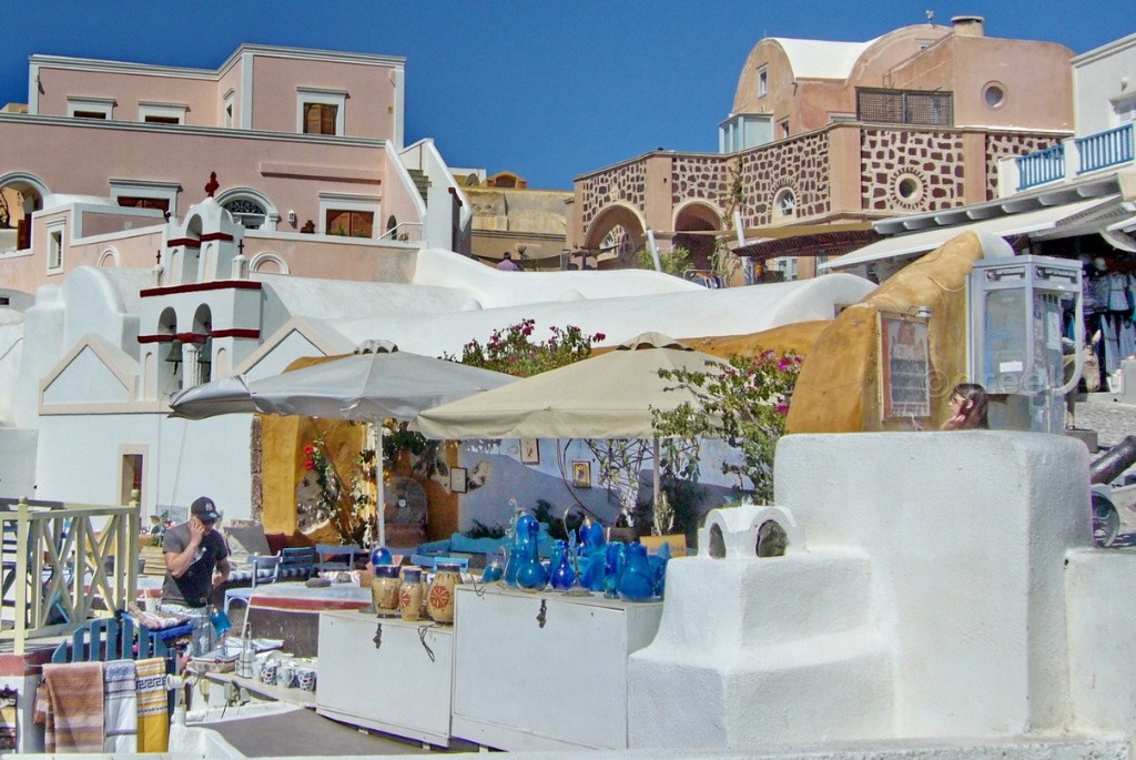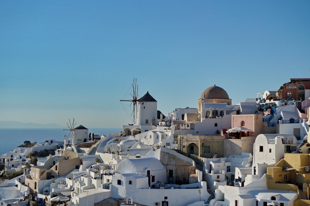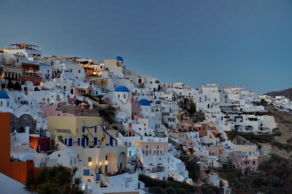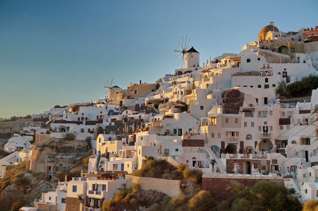Белые, розовые, желтые домики теснятся на склоне также как и в Фире.