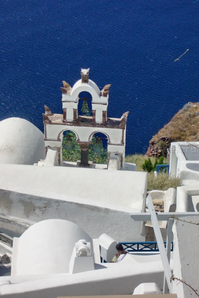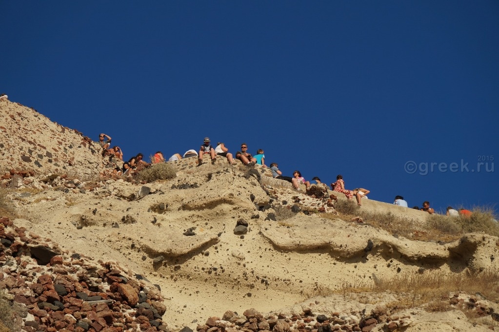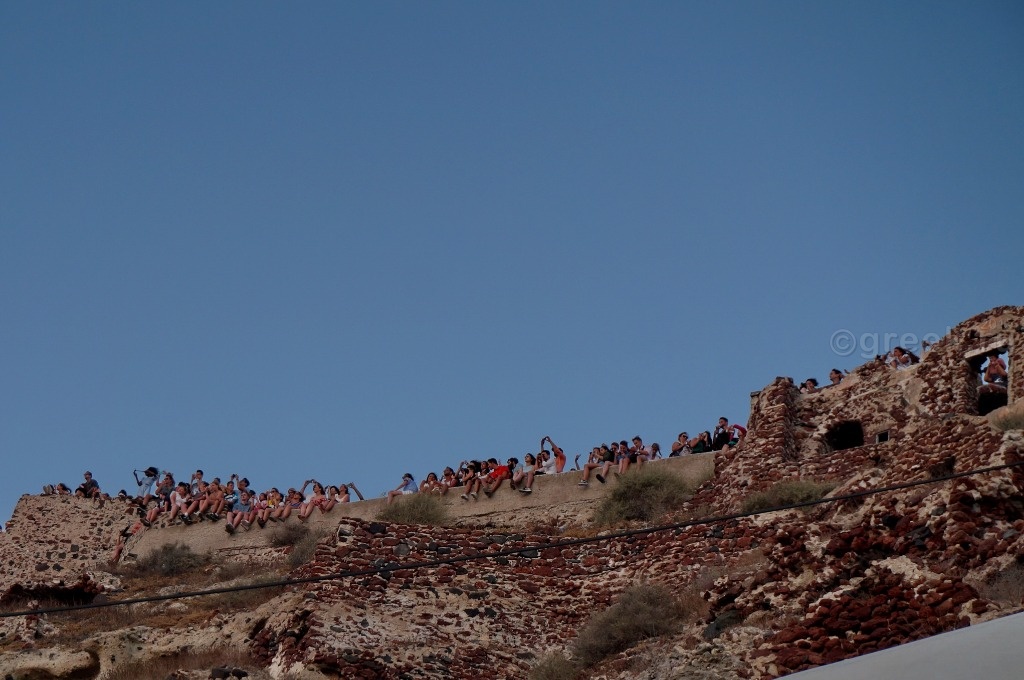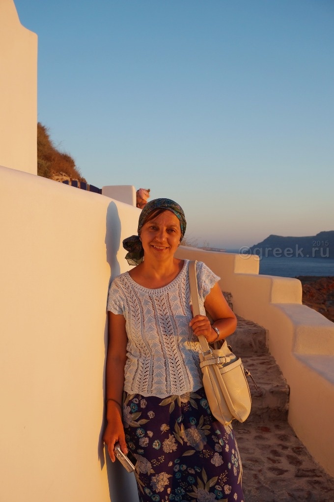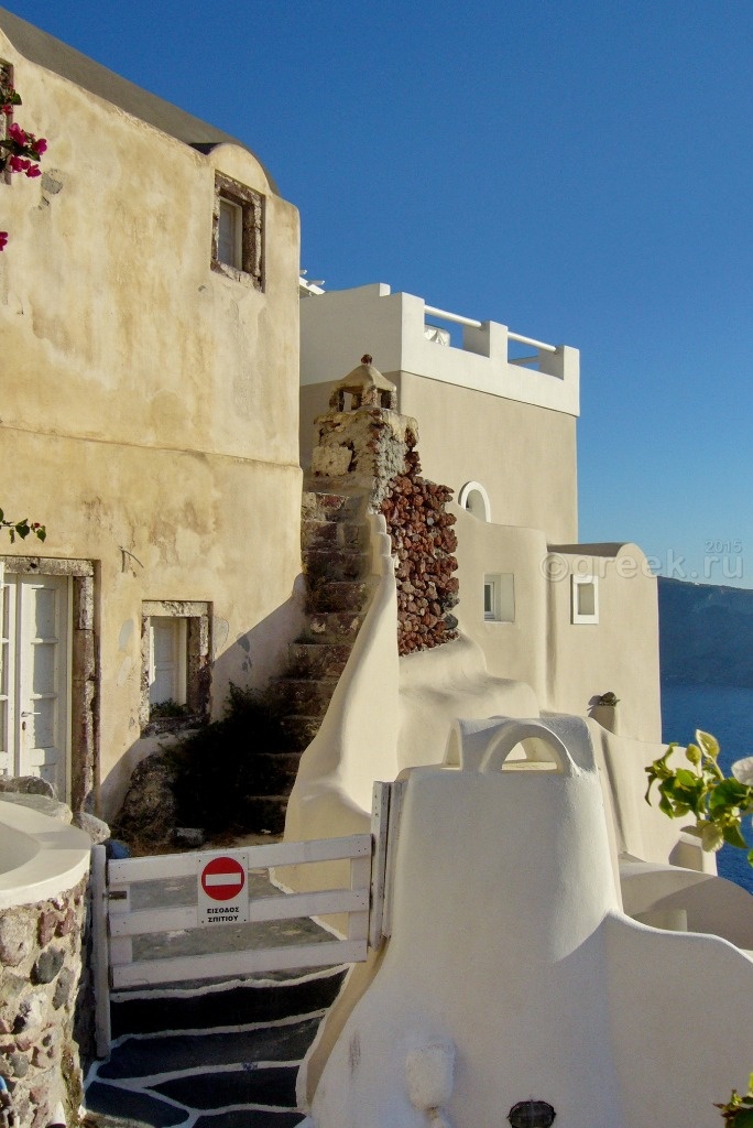 а смотреть закат из-за чужих спин мне с моими 162 см как-то не хотелось. У кого-то в отчете я прочитала, что закат можно наблюдать с лестницы, которая ведет в порт Ии. Мы спустились, убедились, что места не заняты, нашли ступеньки какого-то отеля, на которых можно было посидеть в ожидании заката (так все и делали).