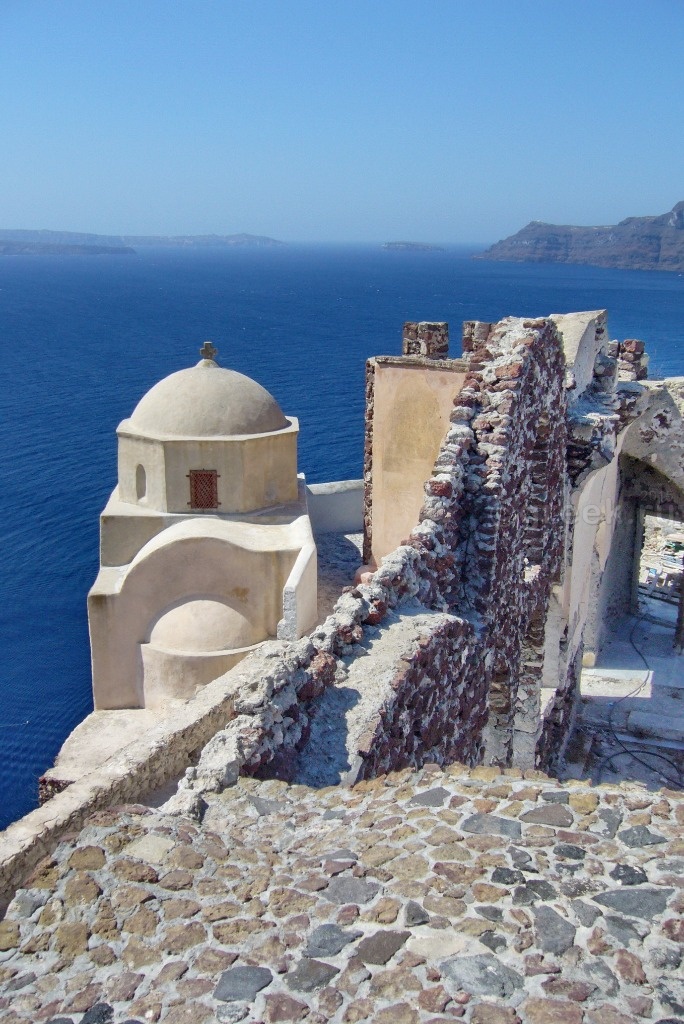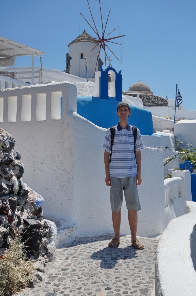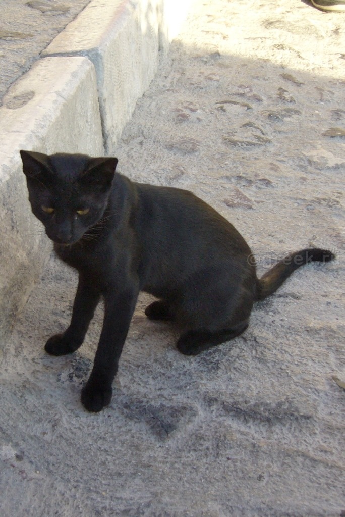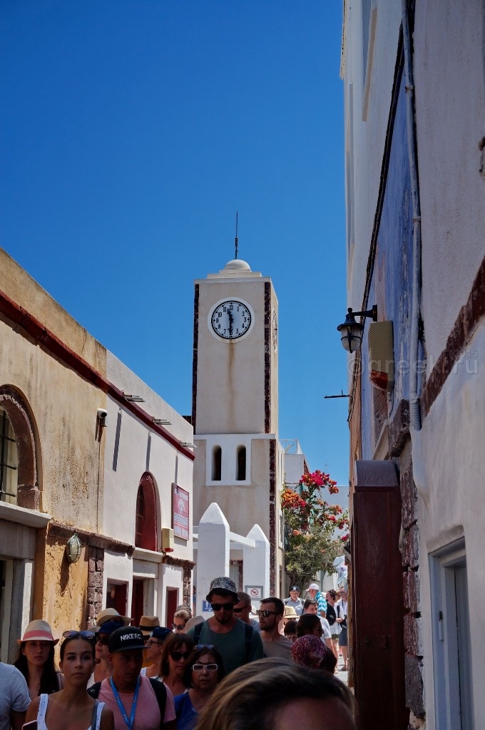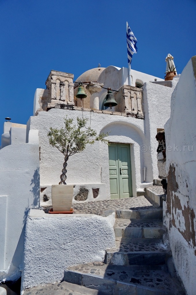 а смотреть закат из-за чужих спин мне с моими 162 см как-то не хотелось. У кого-то в отчете я прочитала, что закат можно наблюдать с лестницы, которая ведет в порт Ии. Мы спустились, убедились, что места не заняты, нашли ступеньки какого-то отеля, на которых можно было посидеть в ожидании заката (так все и делали).