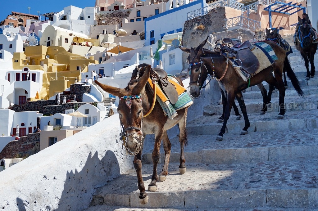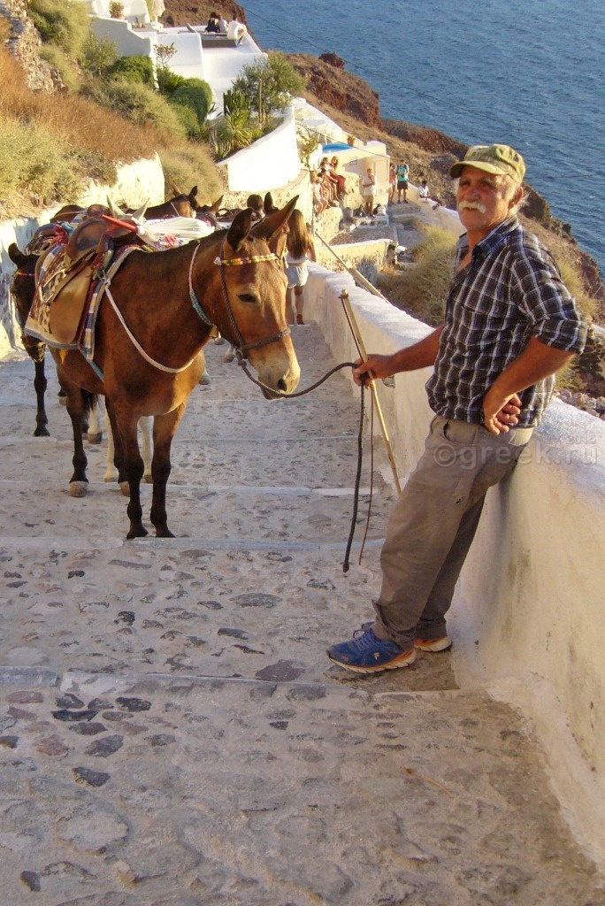 В Ие тоже туристов доставляют в порт или из порта на мулах, хотя, на мой взгляд, дорога тут попроще, чем из порта в Фире.