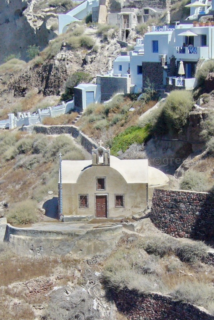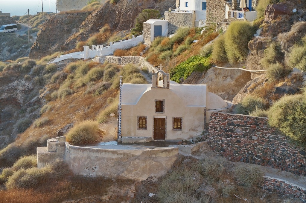Небольшая церковь Святой Анаргири (Ekklisia Agii Anargiri) на склоне.