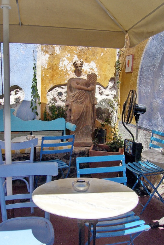 двинулись в направлении автобусной остановки, так как в этот день у нас еще был запланирован поход в Археологический музей Фиры. Там находятся экспонаты, найденные при раскопках в Древней Фире и некоторых других местах острова. Конечно, не такая древность, как в Акротири, но тоже более 2 тысячелетий назад все это было сделано. Музей расположен на улице Erithrou Stavrou, от автостанции минут 8 – 10 пешком. После Археологического музея Ираклиона и музея Доисторической Фиры производит меньшее впечатление. В нем, в основном, выставлена посуда и немного античных статуй.