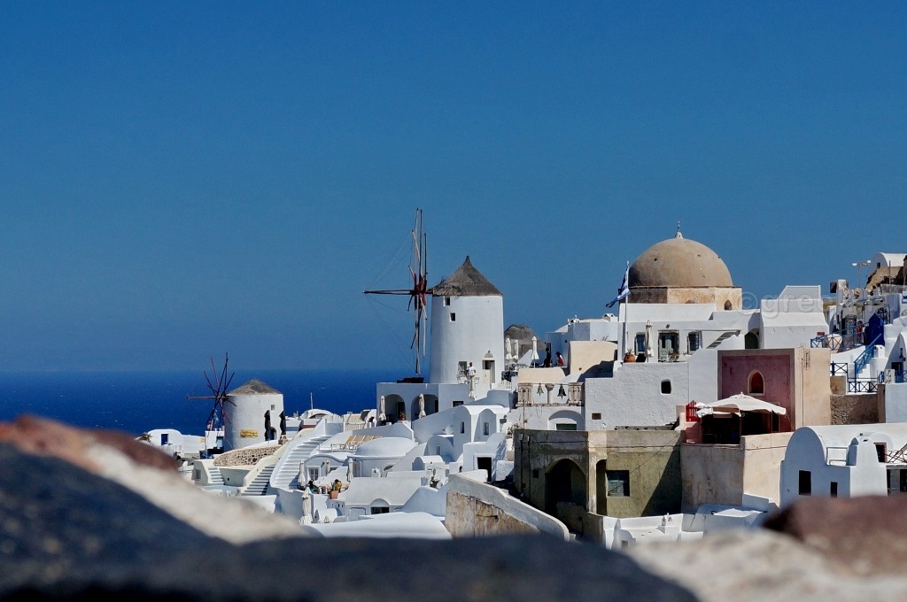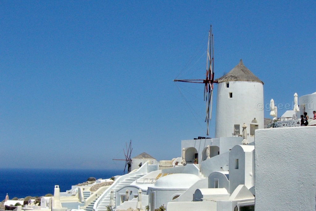 После музея пошли к мельницам. Там сейчас находятся одни из самых дорогих отелей в Ие, и на Санторини в целом. Стоимость на сегодняшний день составляет 37 – 48 т.р. в сутки.