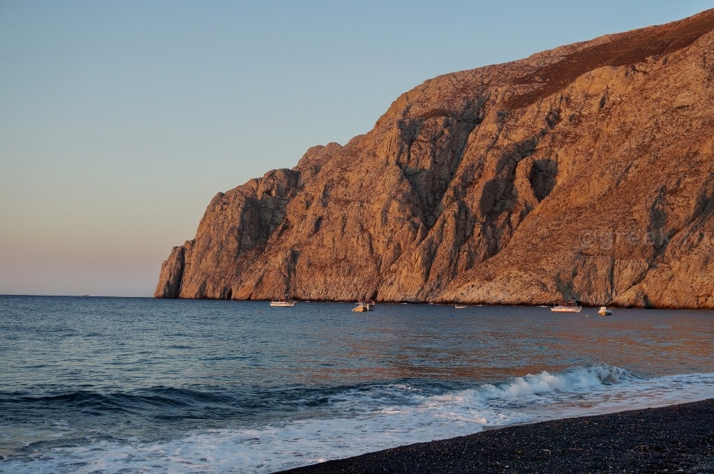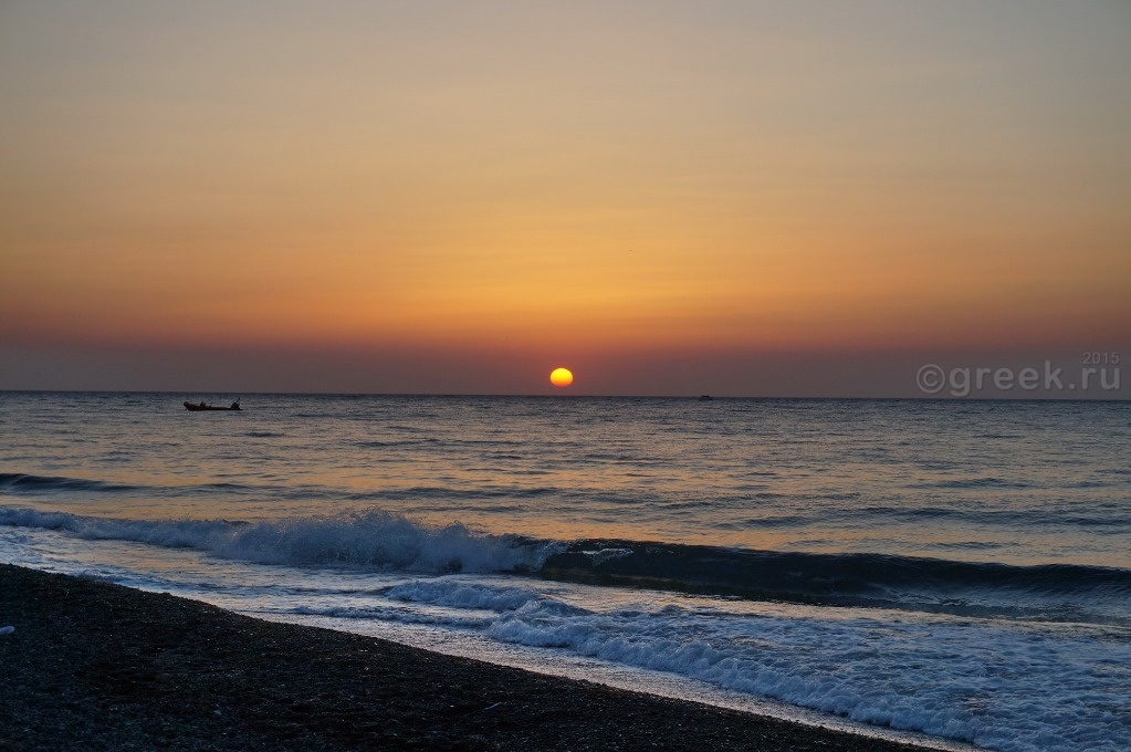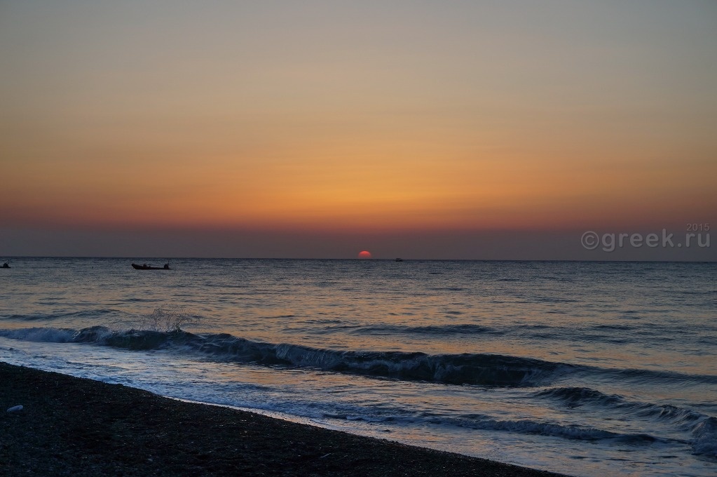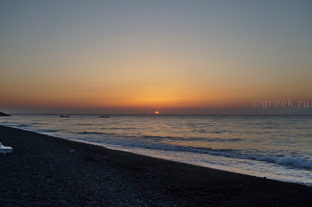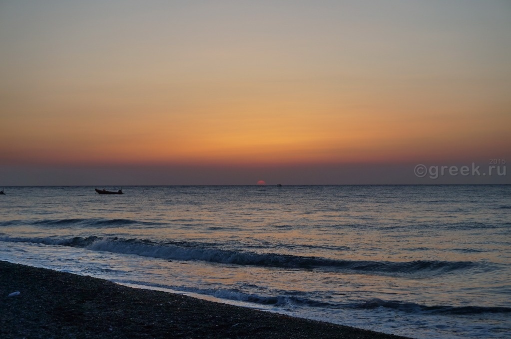 На автобусе в 15 часов выехали в Фиру. В 16-15 от автовокзала Фиры автобус отправляется в порт Афиниос. Доехали быстро, очереди на посадку на паром не было. Да и пассажиров было совсем мало. Видимо, в воскресенье не было экскурсии с Крита, паром шел полупустой. Отплыли строго в 17-25. По телевизору всё время показывали новости про землетрясение на острове Кос. У нас на Санторини все было спокойно. Вначале пути совсем не качало, только последние минут 20-30 немного стало ощущаться волнение на море. Но никого не укачало. Паром прибыл в порт Ираклиона в 19-30.