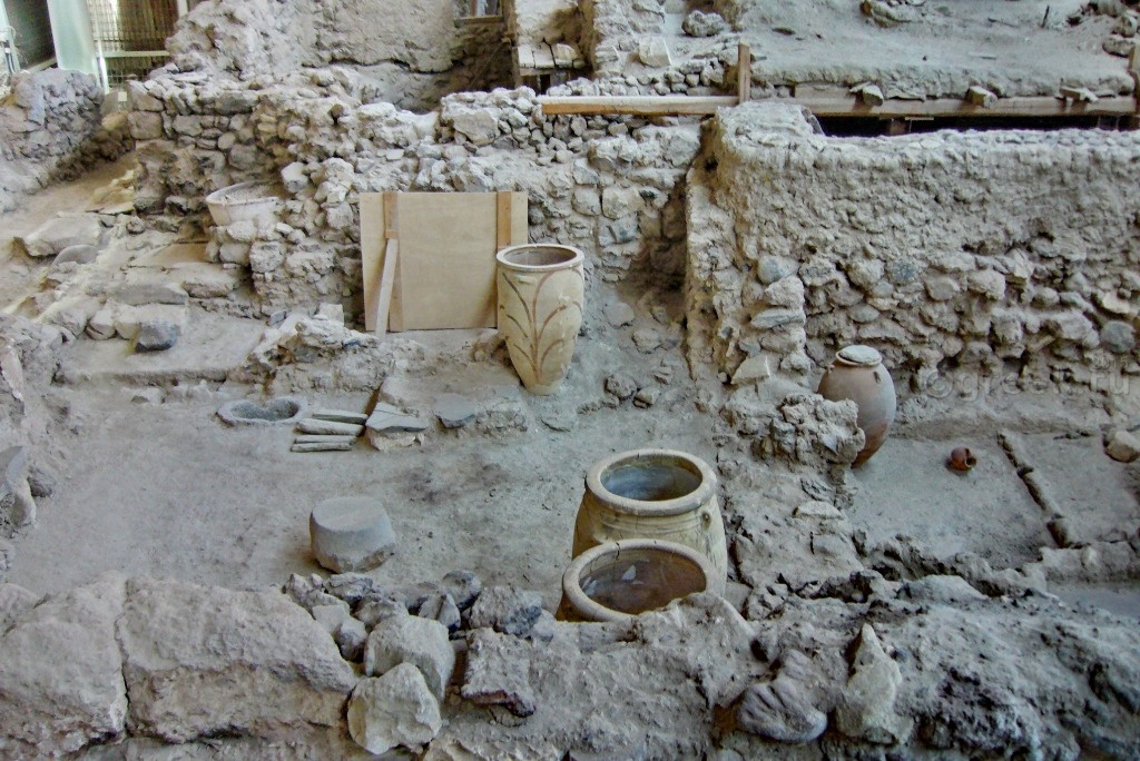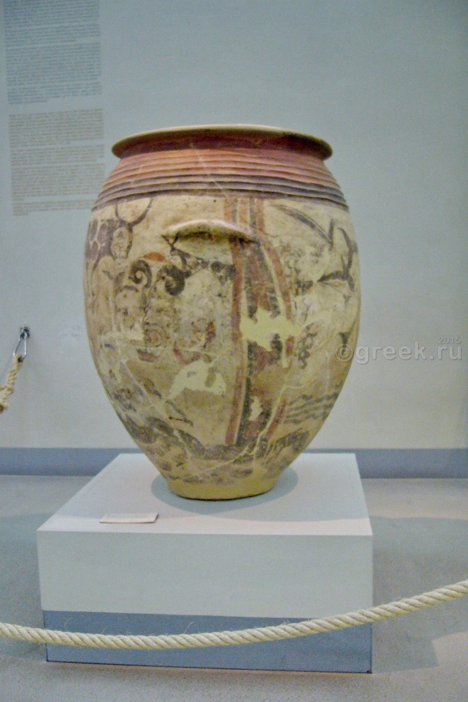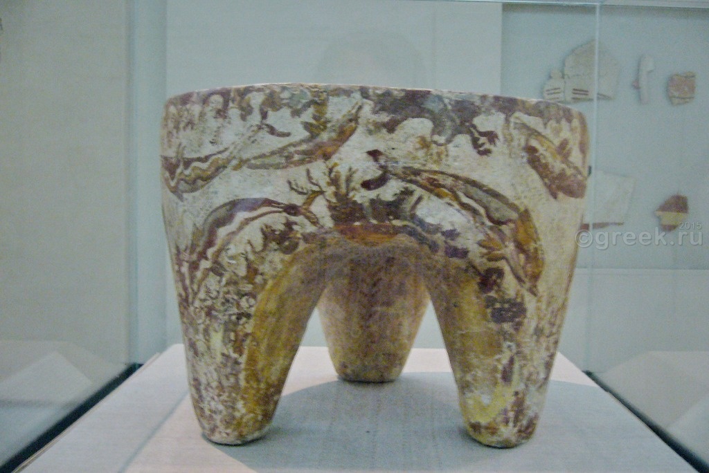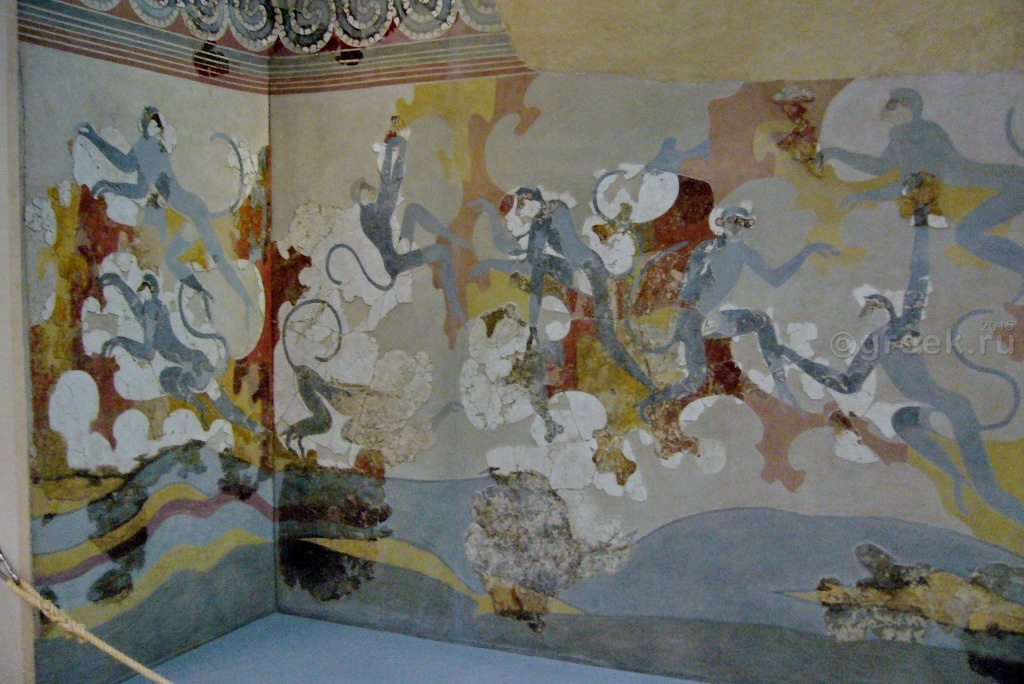 Фресок меньше, чем в музее Ираклиона, но интересны не только сами фрески, но и находки, которые были сделаны в мастерских по их изготовлению. В музее выставлены обломки посуды с остатками красителей, штукатурных смесей, инструментов, с помощью которых создавались эти фрески. Эти находки позволяют нам заглянуть в такие древние века!