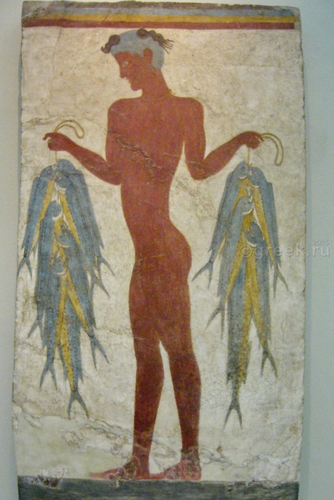 Самая известная фреска Древнего Акротири - "Продавец рыбы"