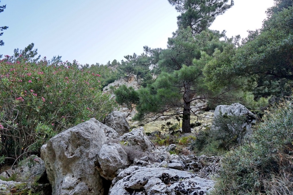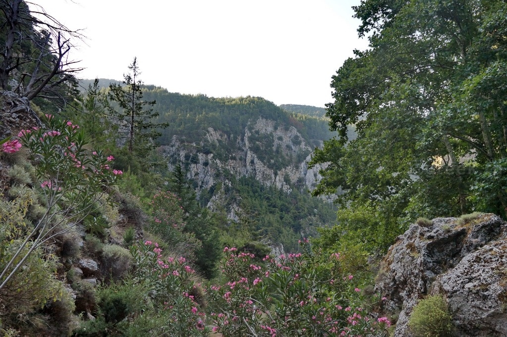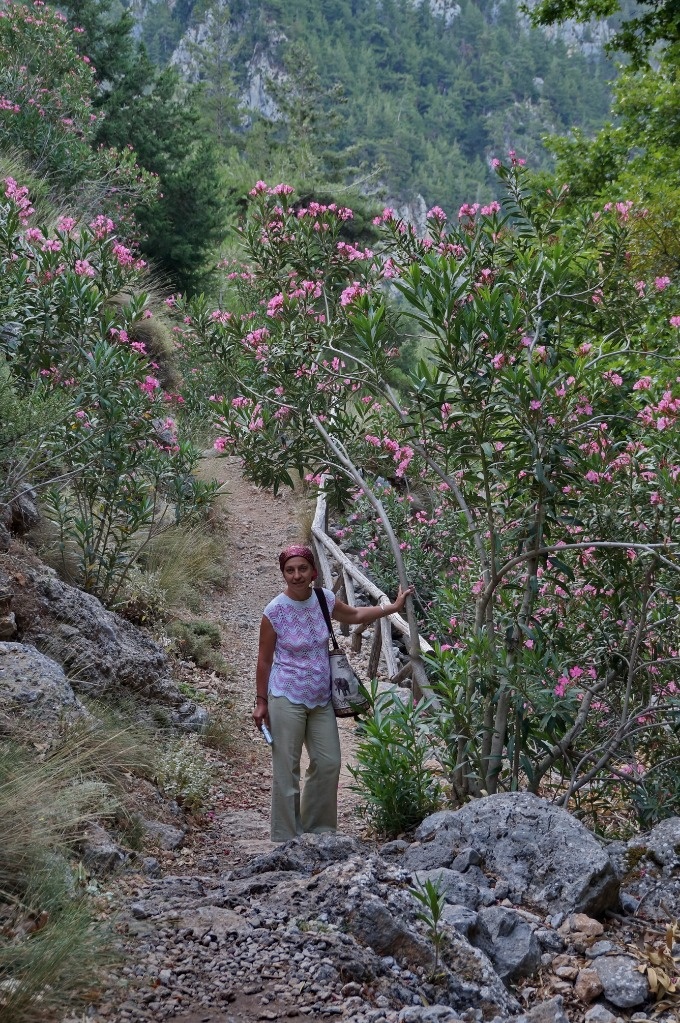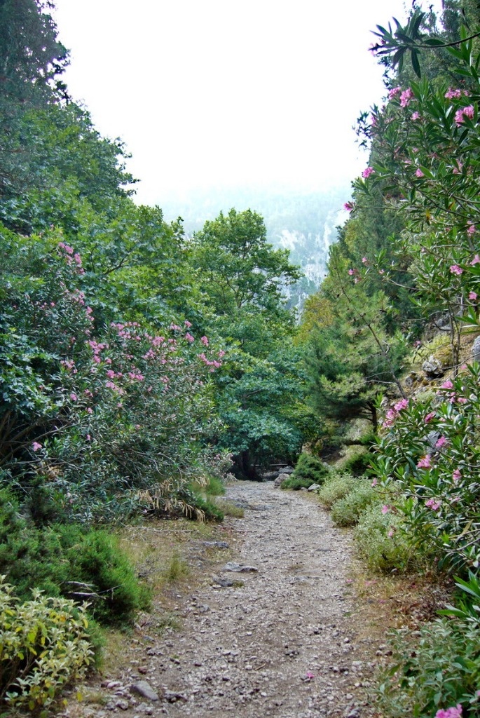 Первый километр ущелья – это прогулка по хорошей дорожке среди сосен, олеандров и прочей зелени.