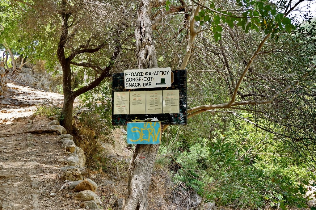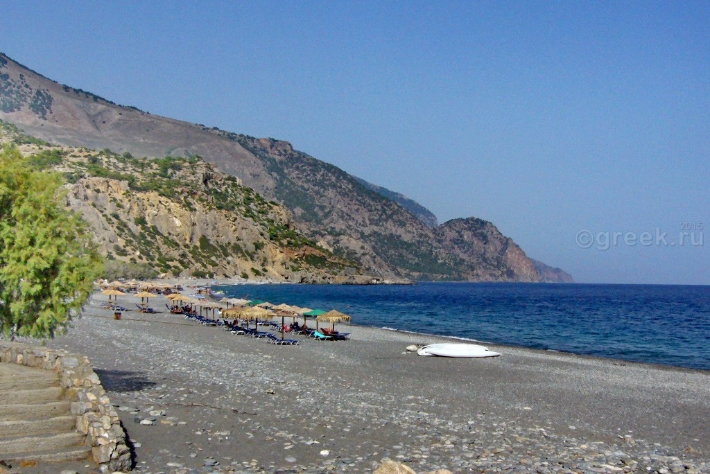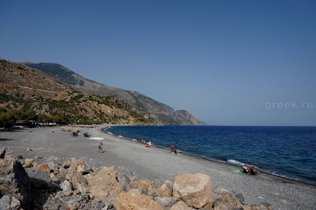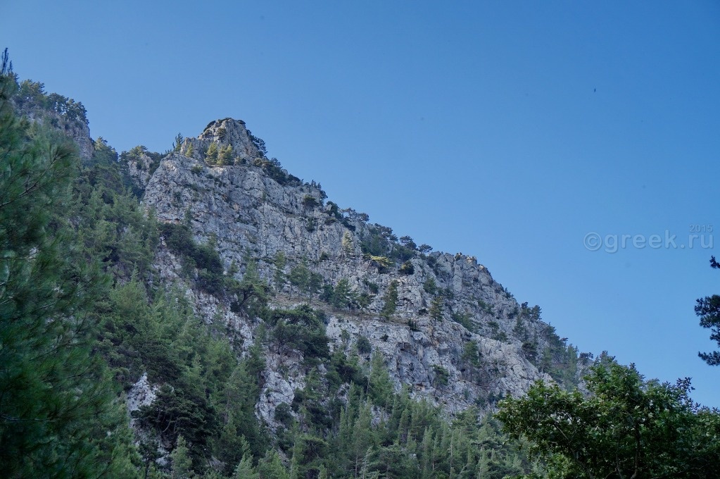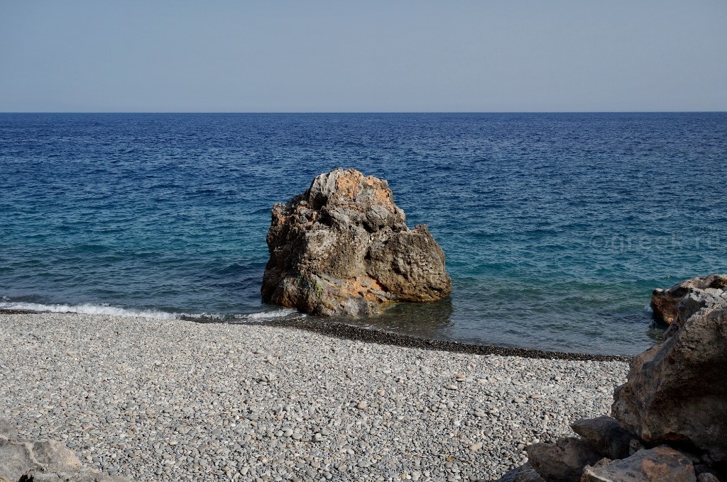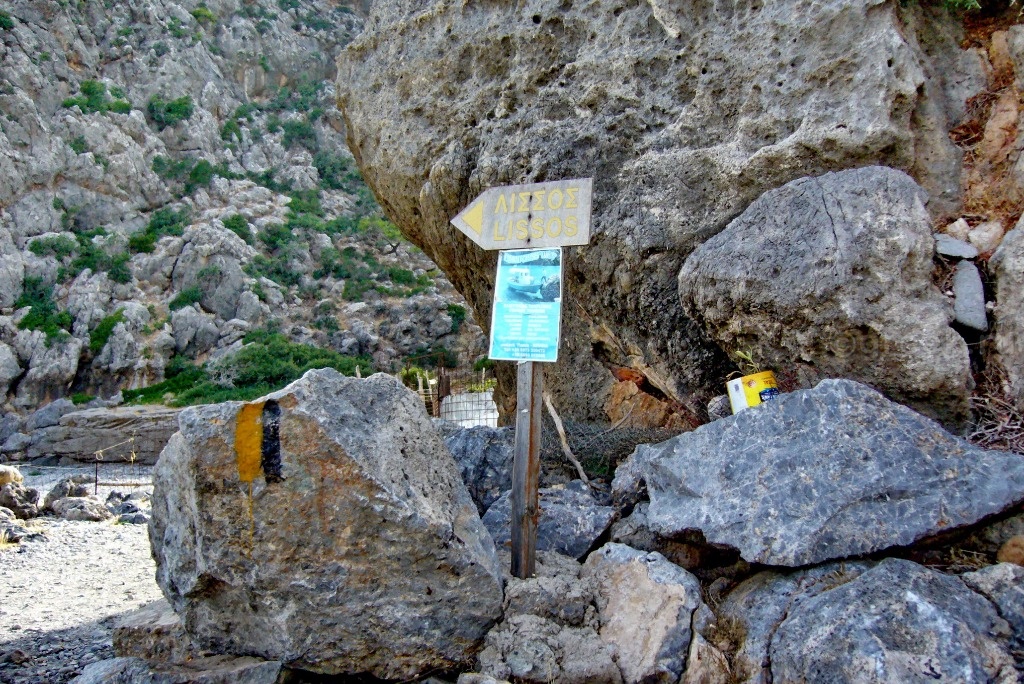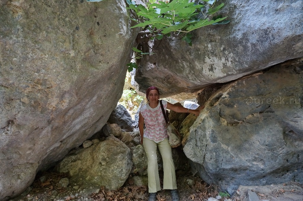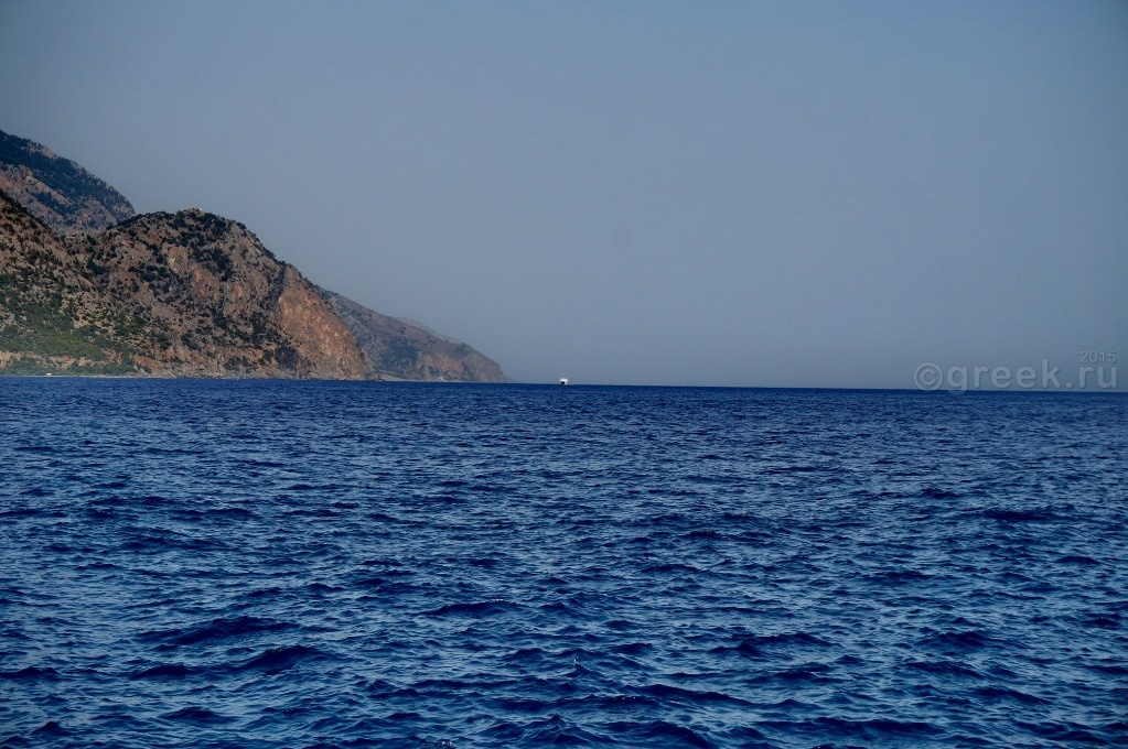 Оно небольшое, но дорога, как я читала, идет по камням. Через это ущелье можно выйти к развалинам древнего города Лиссос, который в древности был крупным портовым городом. Если нет желания покорять ущелье, можно прокатиться на лодке до пляжа Лиссос. Объявление о предоставлении подобной услуги мы видели.