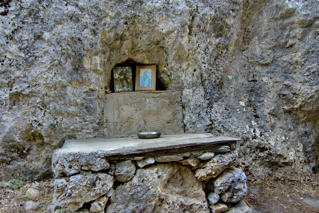 В скале, в небольшом углублении стоят две иконы. Мини-часовня под открытым небом.