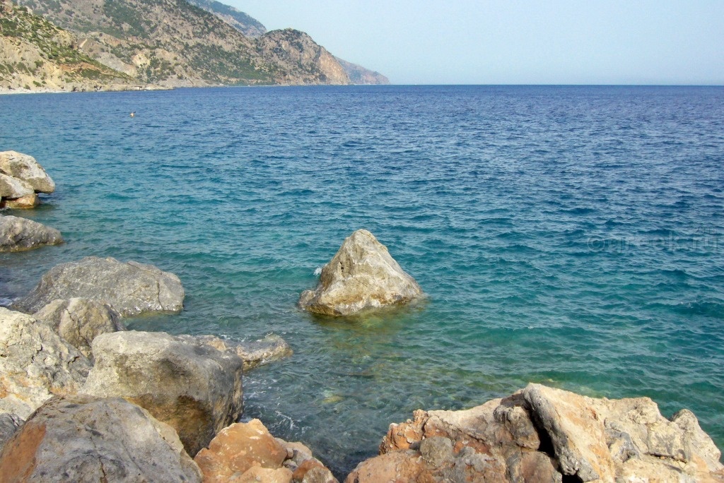 Наконец, наш водитель наговорился и отвез нас к морю. Я на форуме не раз читала, что Ливийское море «ласковое». Еще думала, какая разница, какое море! Море – оно и в Африке море, тем более до нее от южного побережья Крита «два шага по карте». А оно, действительно, ласковое!