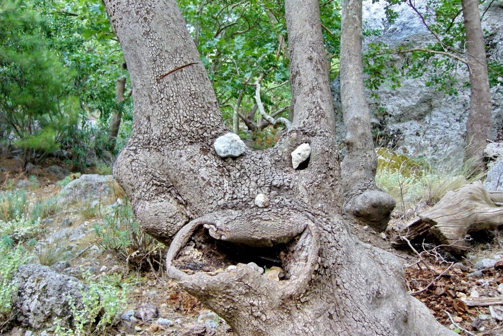 В шесть часов утра автобус забрал нас от остановки около супермаркета SYN.KA, собрал еще туристов из других отелей, примерно через час подъехал к кафе для завтрака. Цены, конечно, завышенные – два кофе и две большие слойки – 10 евро. Что поделать – монополия. Примерно в половине восьмого автобус прибыл к спуску в ущелье Самария. Никак нельзя обойти вниманием нашего гида. Внешне он очень похож на известного стриптизера Тарзана. Высокий, спортивного телосложения и с длинными вьющимися светлыми волосами. Инструктировал пассажиров он на английском, несколько раз предупреждал, что если есть проблемы со здоровьем: с сердцем, коленными суставами, давление, то лучше отказаться от Самарии и пройти более легкое ущелье. Рассказал о предстоящих «check-point», предупредил, что если на первых двух километрах возникнут проблемы, лучше потихоньку вернуться. Конечно, идти вверх будет трудно, но все равно это легче, чем идти дальше 16 километров. В завершении сказал, что пойдет по маршруту через 30 минут после того, как спустится последний турист в этой группе, будет отслеживать отстающих. То есть, как я поняла, гиды по этому маршруту ходят несколько раз в неделю весь сезон. Нас к входу в ущелье Агия Ирини отвез водитель уже без гида, при этом пообещал, что будет ждать нас примерно через три часа в кафе «Оазис». Дорога до ущелья серпантинистая. В одном месте стоят шеренгой ветряки. Сначала мы их увидели издали, потом дорога кругами подошла к самому их подножью, обогнула их и побежала дальше. Жаль, через окно автобуса не удалось их сфотографировать. Очень красиво они смотрятся на гребне горного хребта!