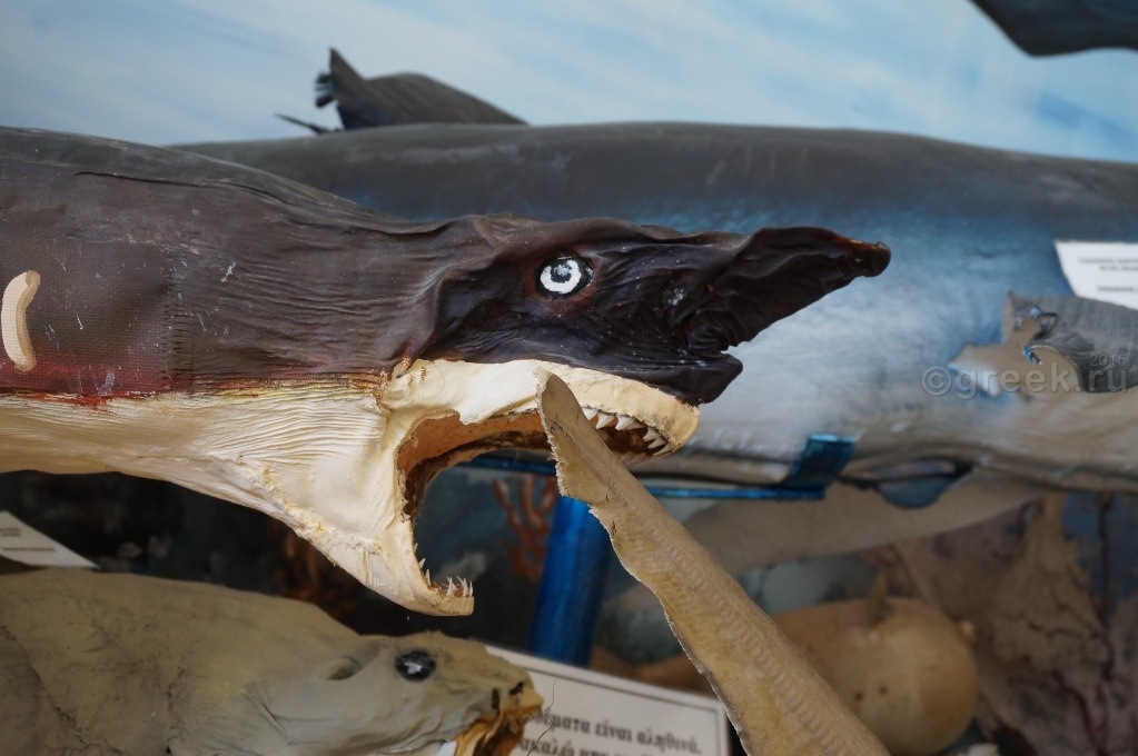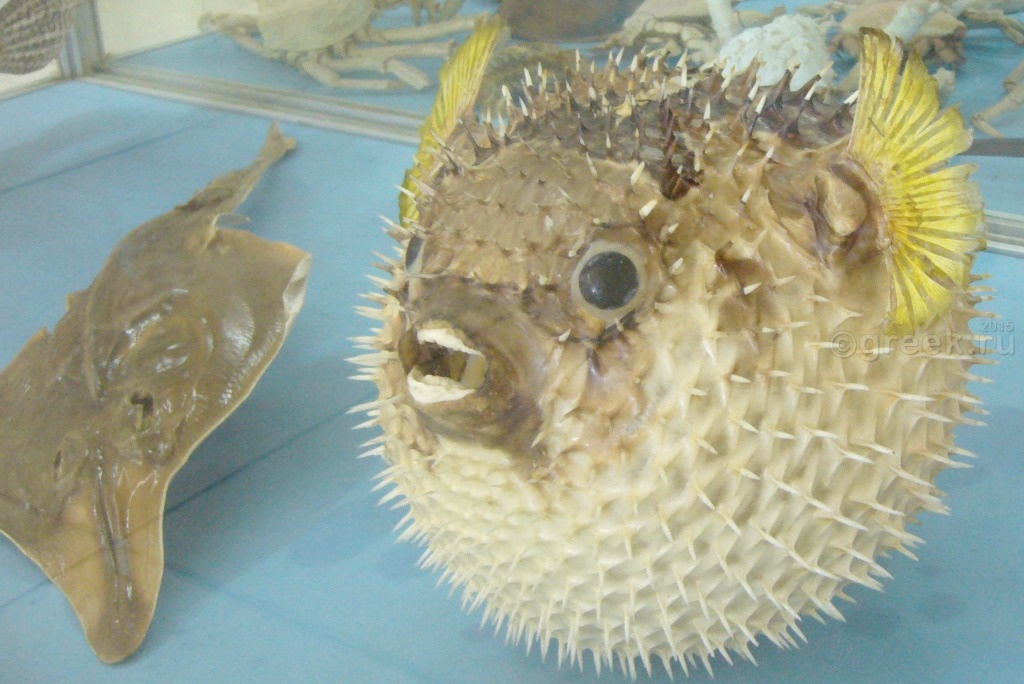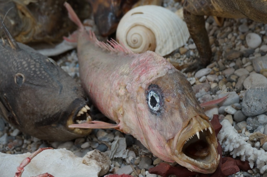 Отзывы неплохие, свой пляж не через дорогу. Но сын настоял на том, чтобы жить в пешей доступности от Канони. Но в этом поселке есть музей ракушек, который мы решили посетить. В Бенитцес из Керкиры ходит городской автобус № 6, расписание смотрим на сайте . Автобус останавливается у автовокзала, так что нам не надо было идти в центр Керкиры. Это удобно. Автобус подошел вовремя. Билет Керкира – Бенитцес стоит 1,7 евро (если покупать заранее в киоске), у водителя будет дороже. Когда мы проезжали Бенитцес по пути на пляж Иссос, обратили внимание, что там два указателя на музей ракушек: при въезде в поселок и в его центре. Я как-то подзабыла, что читала, что теперь музей находится около отеля «Potamaki Beach», мы вышли у первого указателя (остановка «отель Le Mirage»). У водителя спрашиваем, правильно ли здесь выходить в музей, а он знай себе твердит название остановки. То ли английского не понимает, то ли не захотел нам помочь. Вернулись по указателю, а здание закрыто и маленький указатель, что до музея надо пройти 200 м. На самом деле оказалось не 200, а все 500 м. Но в центре поселка тротуар есть, так что дойти было не трудно. Вход в музей – 4 евро, музей небольшой, но очень интересный. Кроме ракушек там есть чучела акул, крабов, змей и прочие интересные морские объекты.