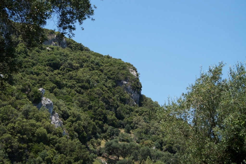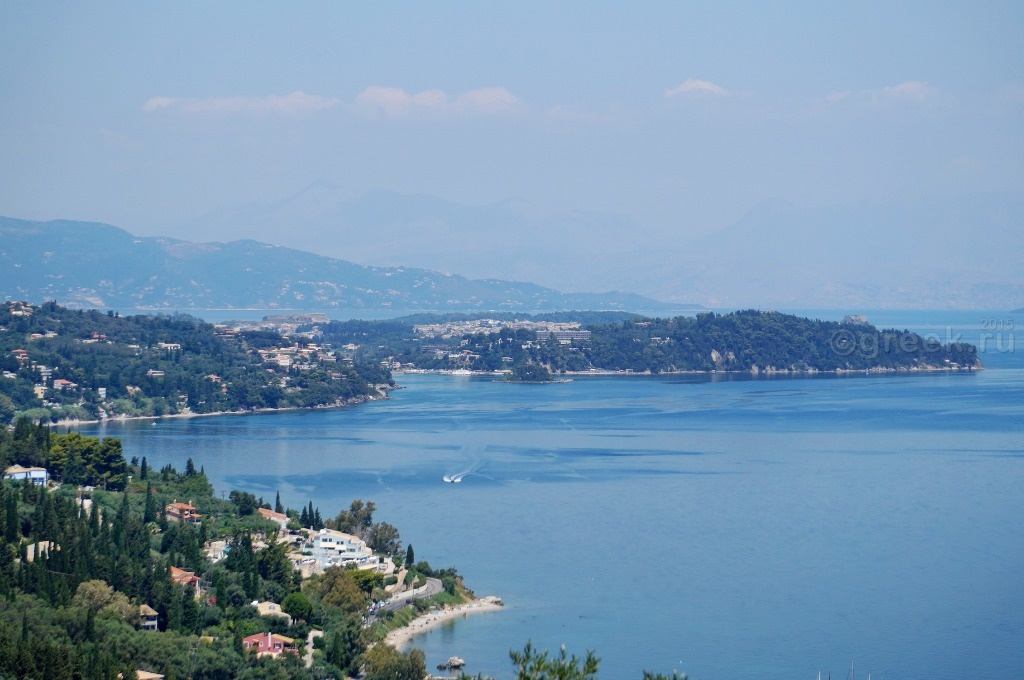 В целом, прогулка по горам заняла у нас около часа. Отдохнули в кафе, съели мороженое, выпили фраппе и пошли на остановку ждать автобуса. Остановка в центре поселка хорошо оборудована, есть даже табло, где указано, через сколько минут прибудет автобус. И еще на остановке стоит автомат по продаже билетов. Мы решили ехать не до Керкиры, а до таверны Nisos, чтобы еще раз пройти по дамбе и посмотреть на самолеты. Остановка у таверны называется «Aegli Hotel», а еще по пути есть остановка «Aeolos Hotel». Конечно, я остановки перепутала. Мы вышли, увидели, что на горизонте никакого Мышиного острова и дамбы нет, но автобус уже закрыл дверь и уехал. Пришлось идти вдоль магистрали, тротуаров, естественно, нет, движение очень оживленное. Шли почти 30 минут, во всяком случае, по пути нас обогнал следующий автобус, а у них интервал движения – 20 минут.
