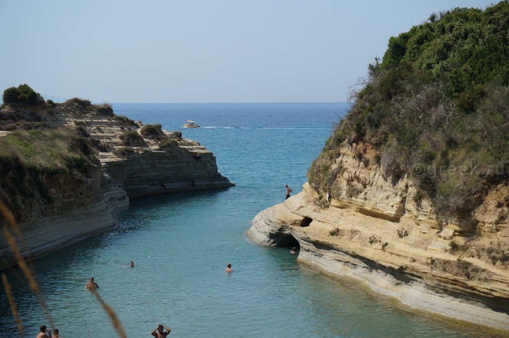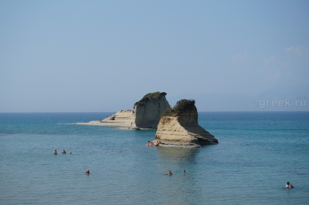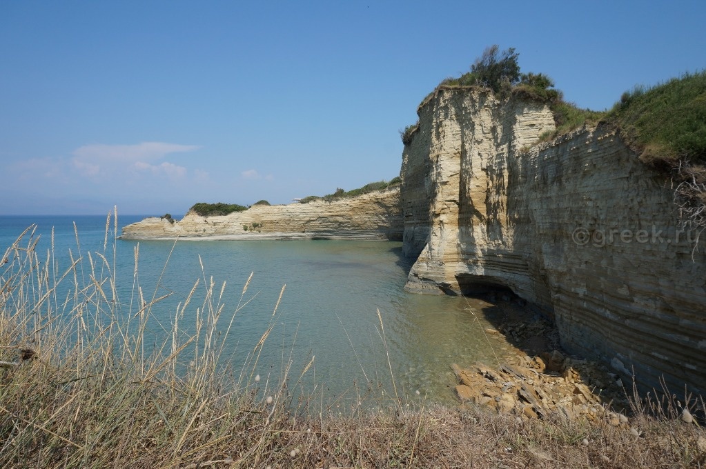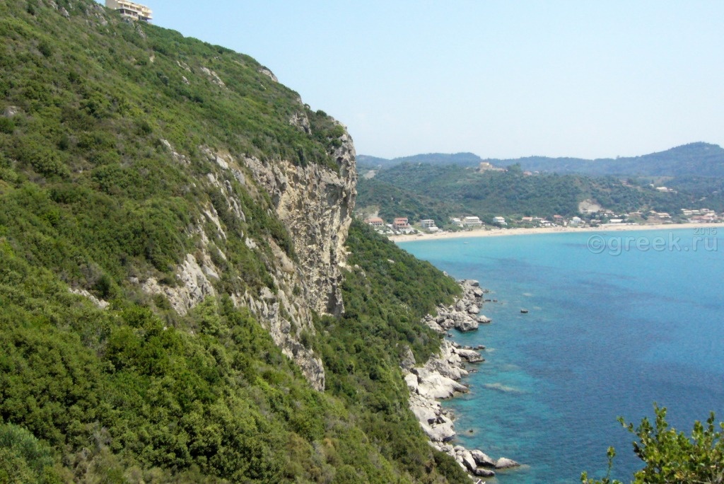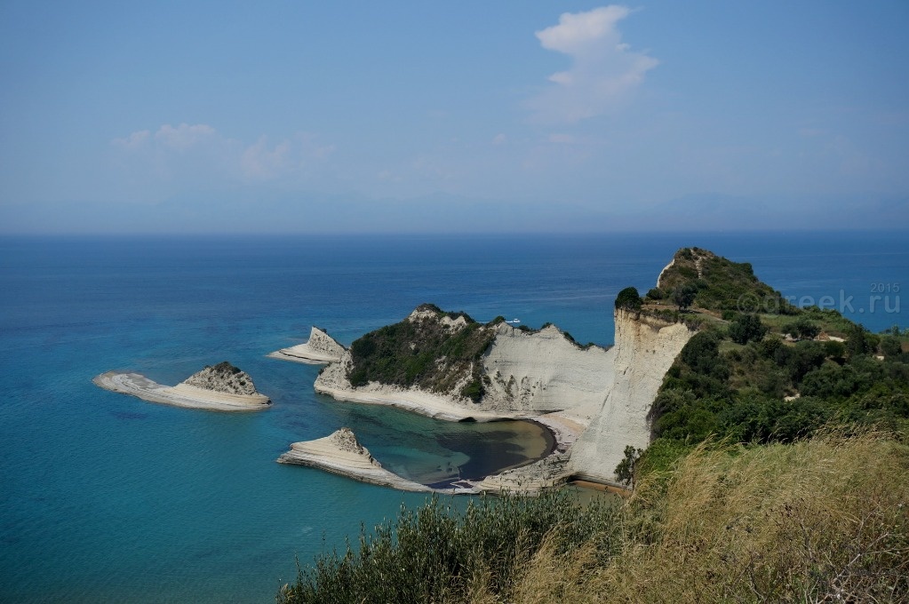К нему можно добраться на лодке от Агиос Георгиоса, но снизу не видно всей этой красоты. Насколько трудно или легко подняться от пляжа к этой обзорной площадке, сказать не могу, но тропинка уходит круто вниз.