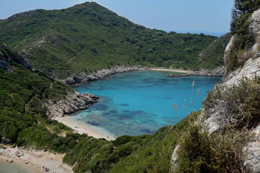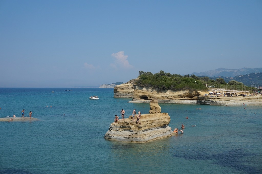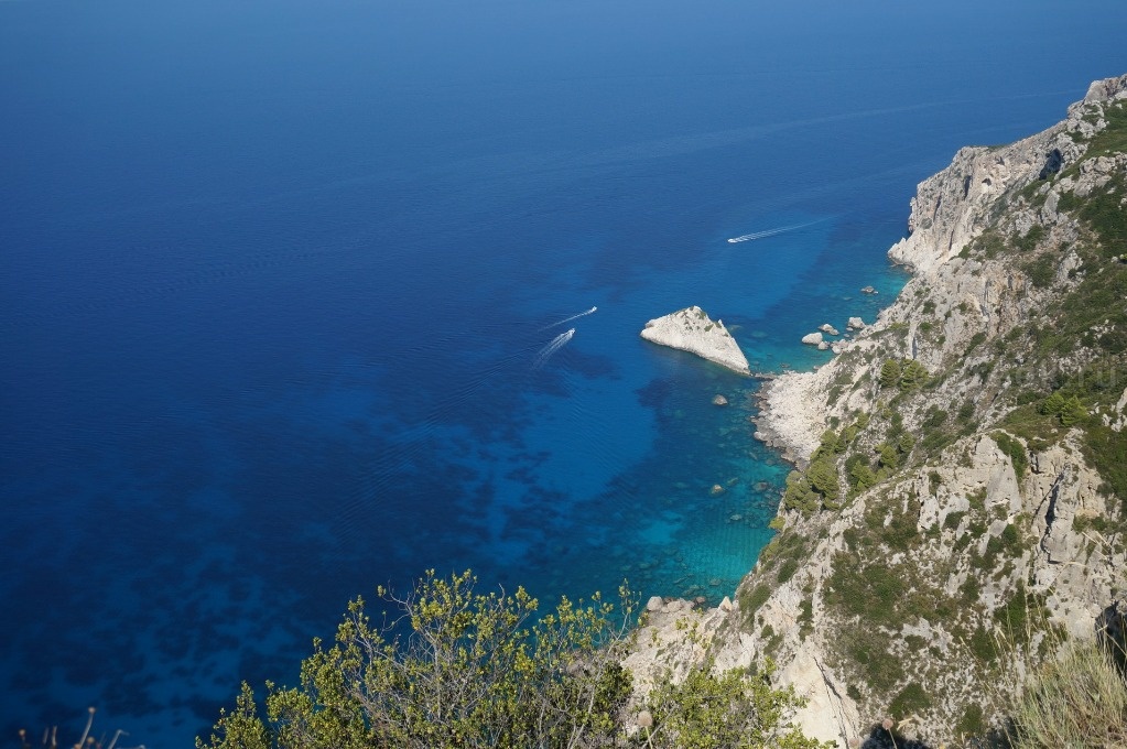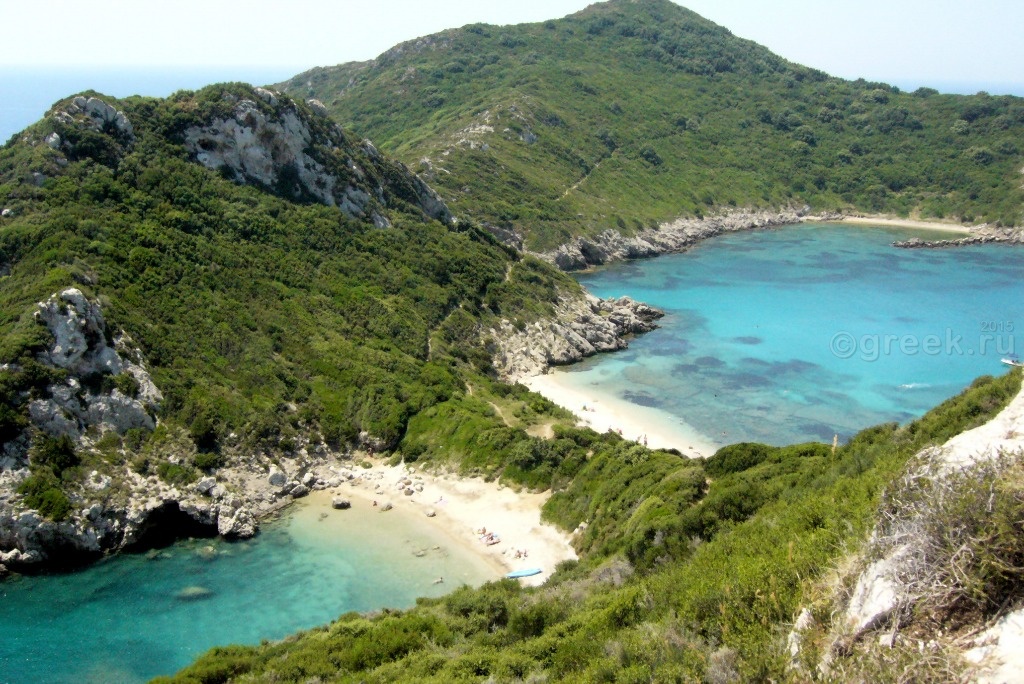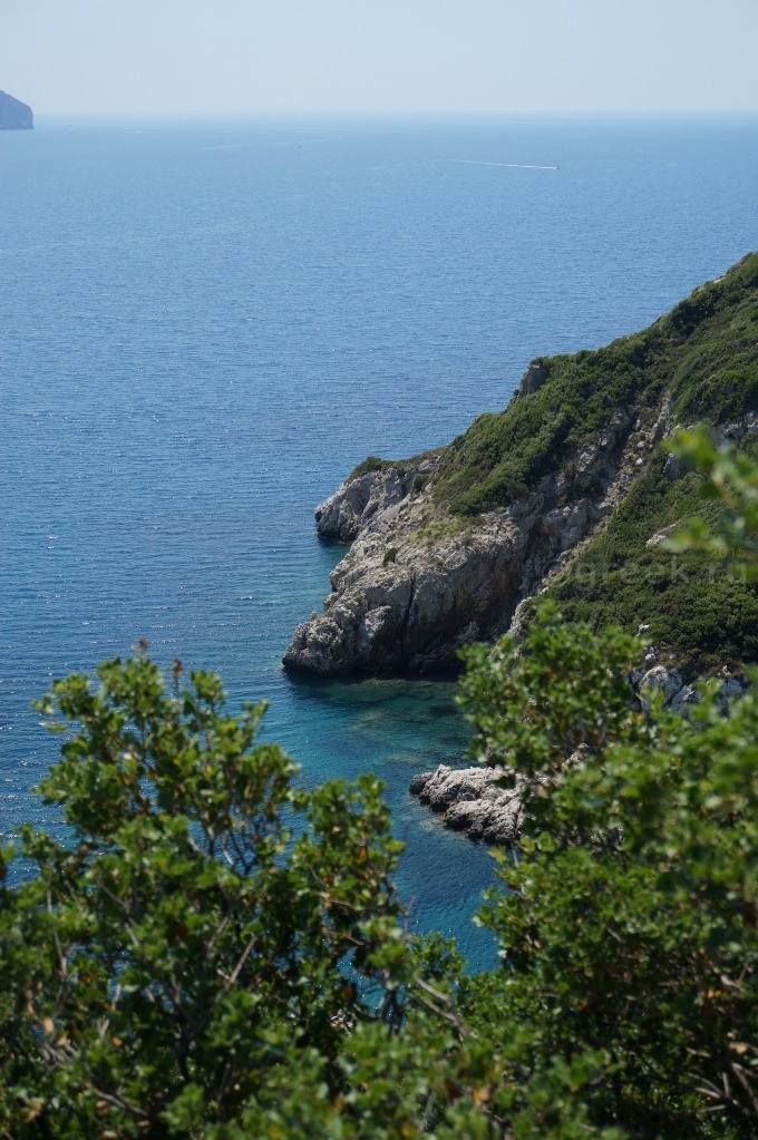 К нему можно добраться на лодке от Агиос Георгиоса, но снизу не видно всей этой красоты. Насколько трудно или легко подняться от пляжа к этой обзорной площадке, сказать не могу, но тропинка уходит круто вниз.