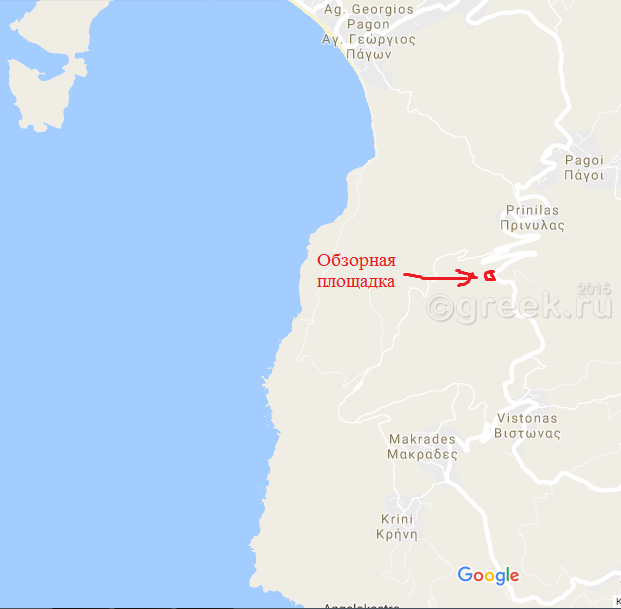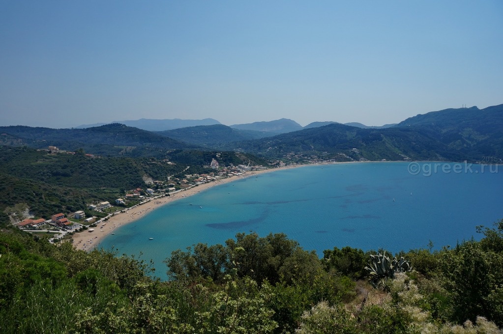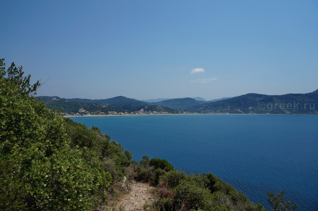 Справа виден пляж Ариллас и мыс Агиос Стефанос