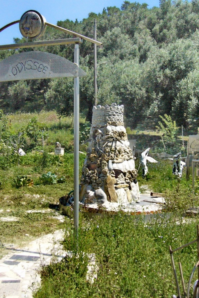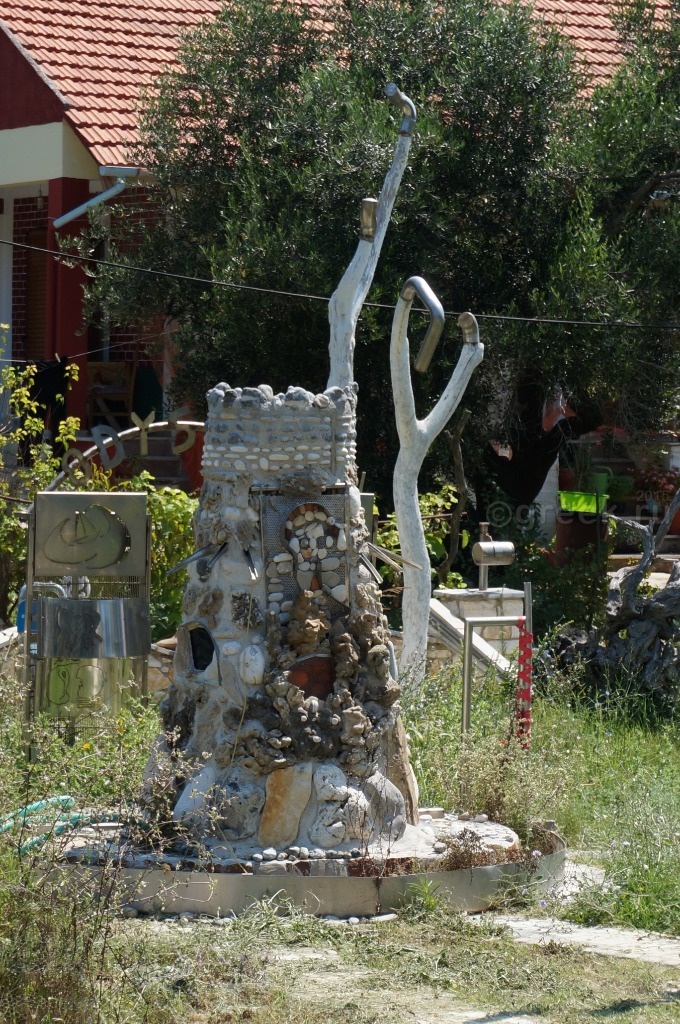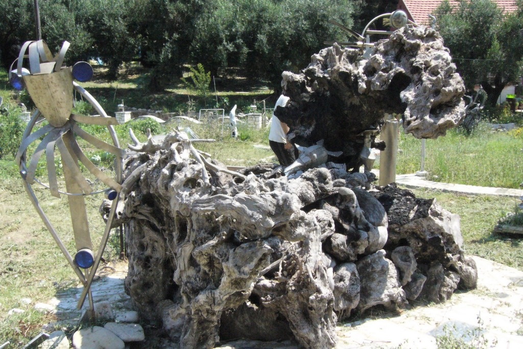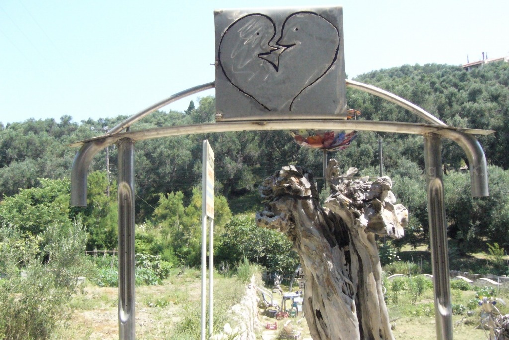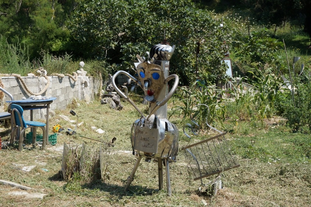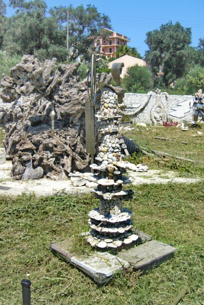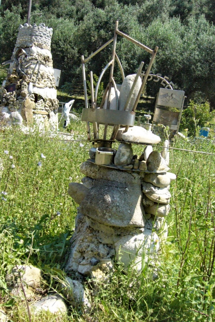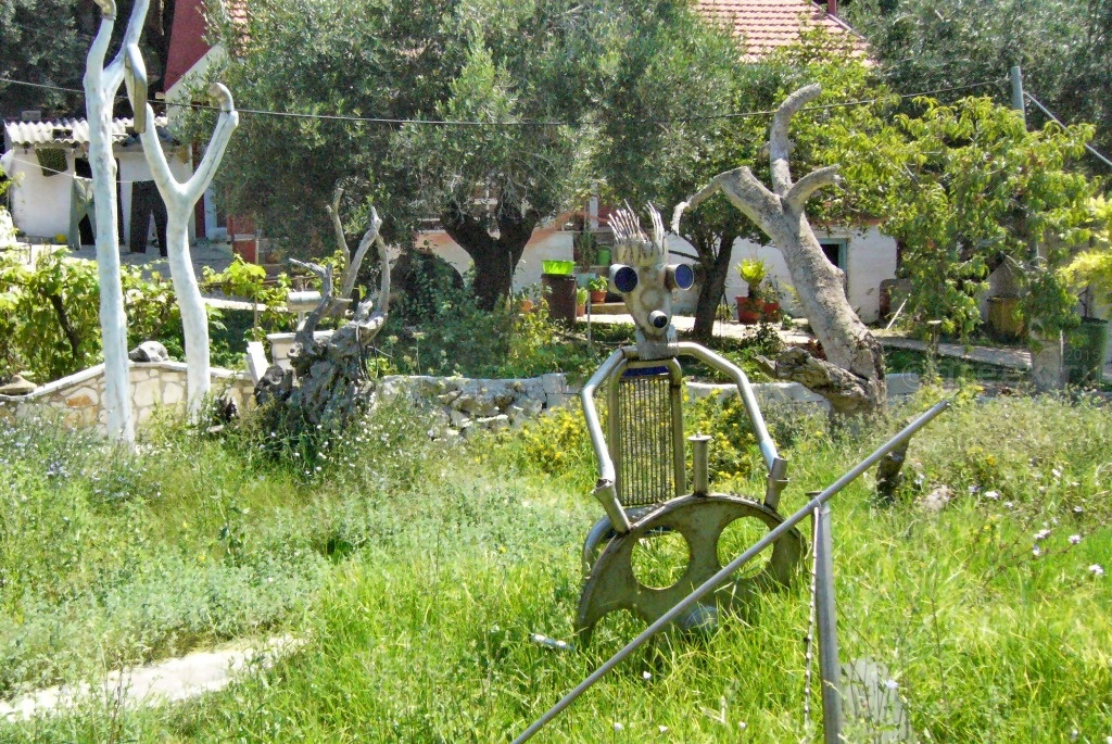 Пляж Агиос Георгиос тон Пагон проехали, поднимаемся к Афионе. И вдруг такой интересный рукотворный парк с железными и каменными фигурками.