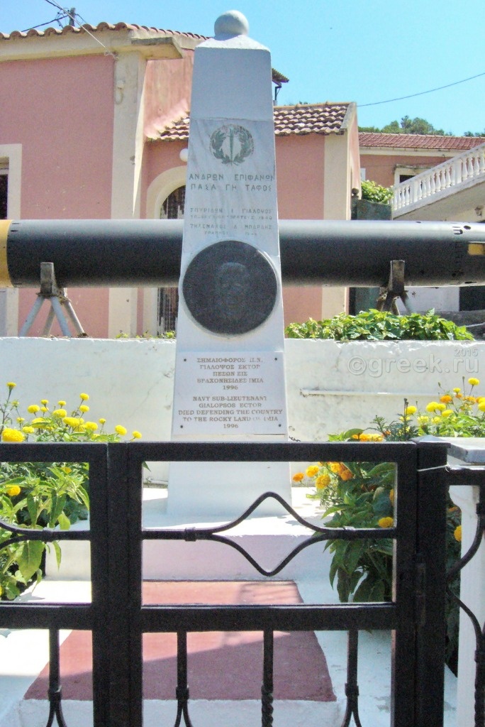 В 1996 году выходец из этого поселка погиб, защищая один из небольших южных островов от турецкого вторжения. Рядом установлена колокольня и якорь.