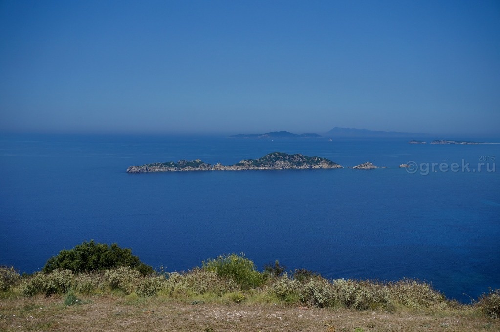 Выходим на ровную площадку со скамеечкой. Видимо, по вечерам здесь хорошо смотреть на закат. Вдали видны Дьяпонические (Дьявольские) острова.