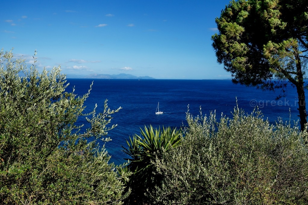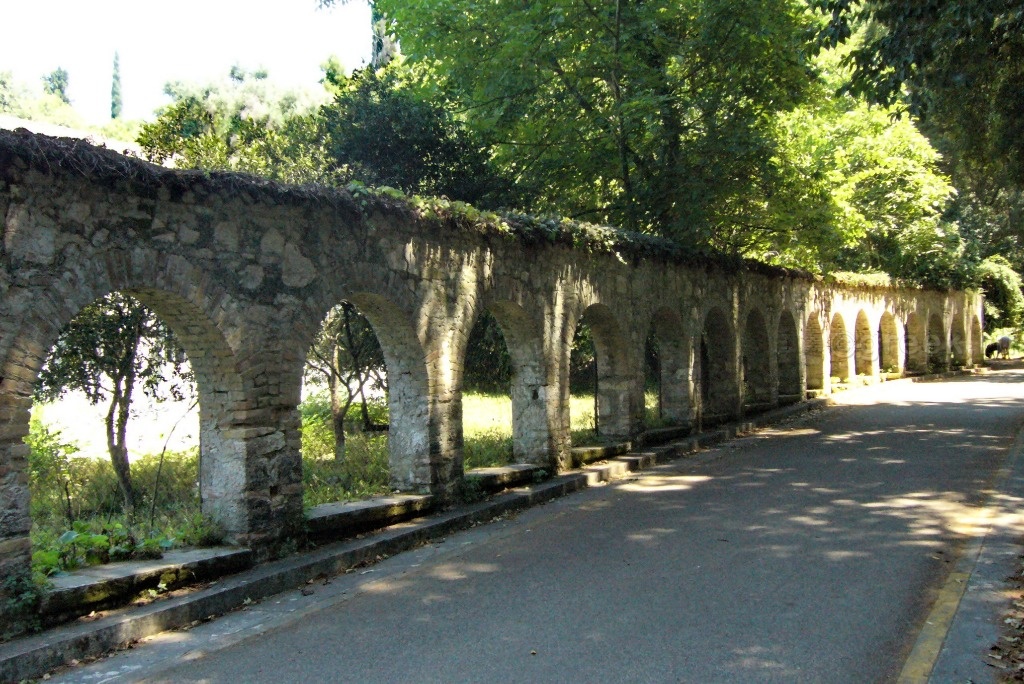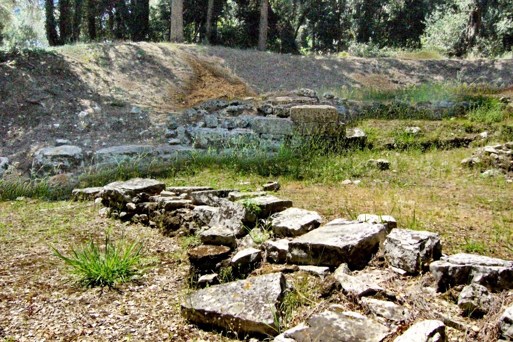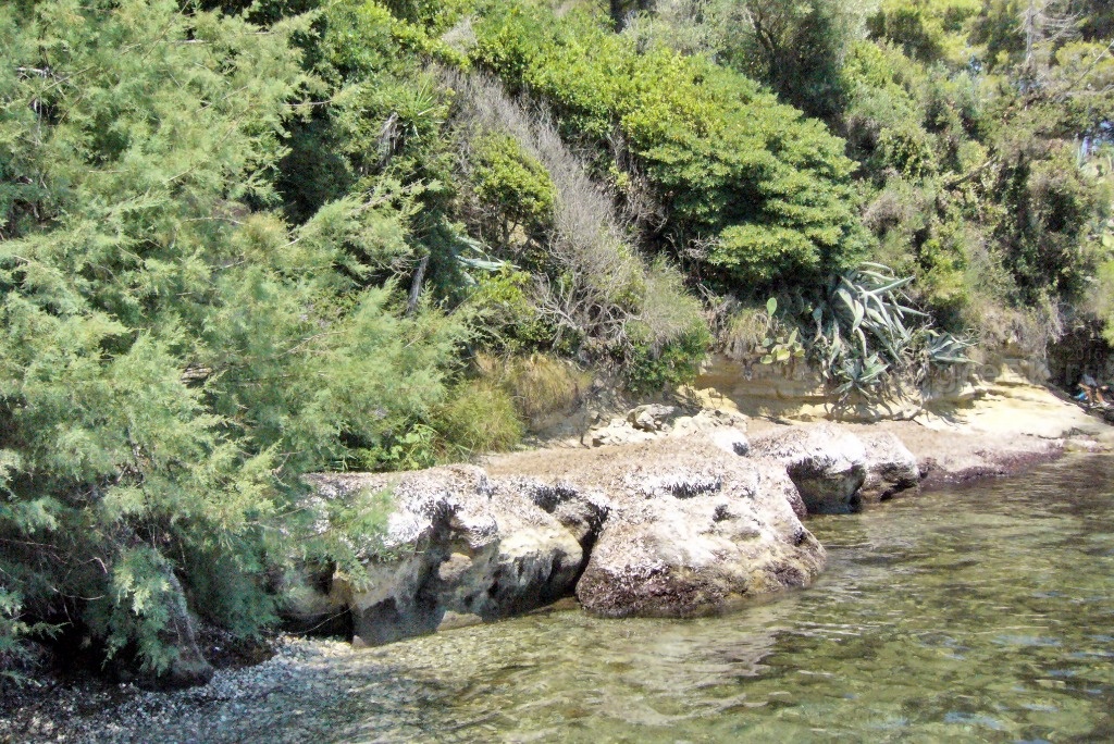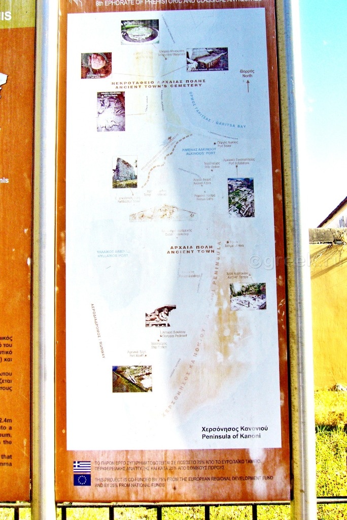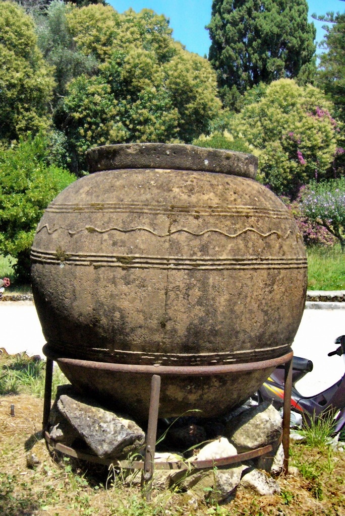 Прогулки вокруг отеля часто приводили нас к различным объектам, напоминающим, что это территория древнего города – Палеополиса. Древний город в 5 веке н.э. занимал площадь от залива Гарица на севере до полуострова Канони на юге. В том месте, где сейчас находится взлетная полоса аэропорта, был древний порт Alkinoos. Каменные стены защищали город от неприятелей со всех сторон. Сейчас фрагмент этой стены можно видеть недалеко от аэропорта.