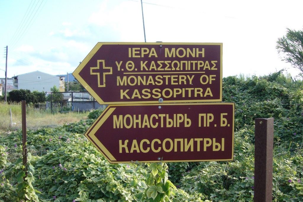 А еще по пути в Канони мы видели такой указатель на монастырь Богородицы Кассопитры.