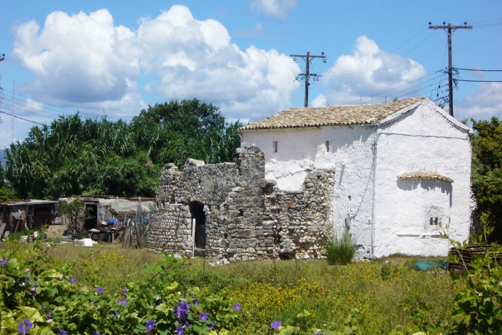 Если в Канони идти по нижней улице (Палеополис, Фигарето), то совсем рядом с аэропортом есть небольшая тропинка, по которой можно выйти еще к одной старой церкви. К сожалению, ни название, ни возраст её мне узнать не удалось.