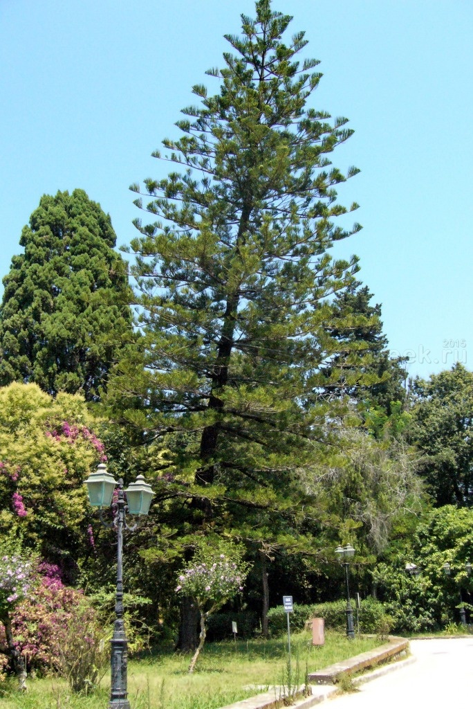 Араукария, декоративных родственниц которой у нас выращивают в горшках вместо новогодних ёлок.