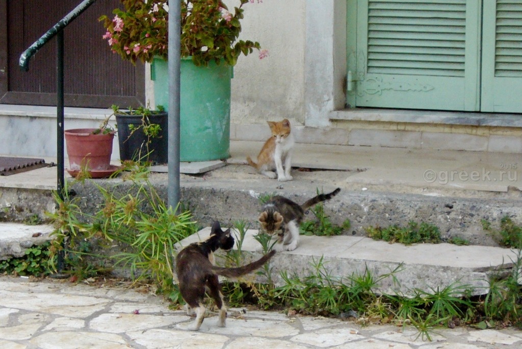 И вот этим кошачьим семейством, обитающим во дворе храма.