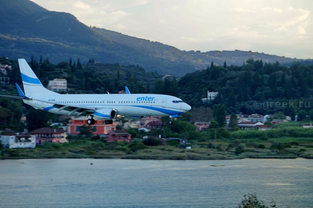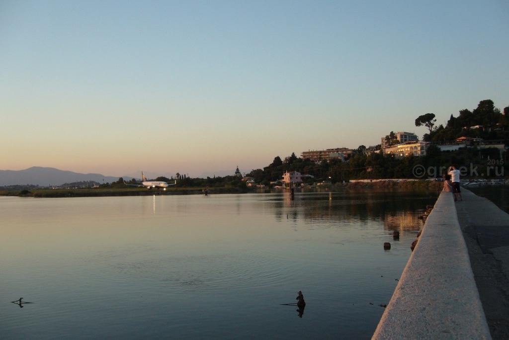 Дамба, которая соединяет Канони и поселок Перама, служит основным местом наблюдения за самолетами.