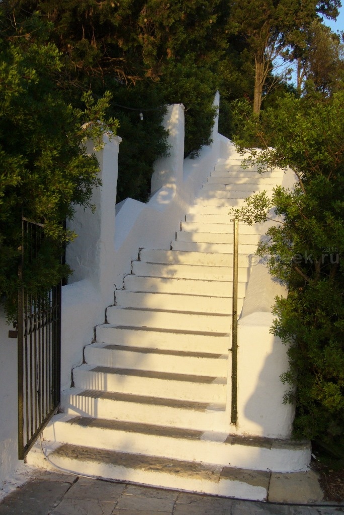 Мышей на острове не видели, а вот белая лестница, которая ведет к церкви, действительно сверху напоминает мышиный хвост.